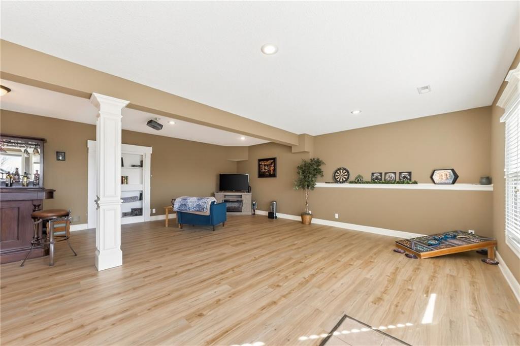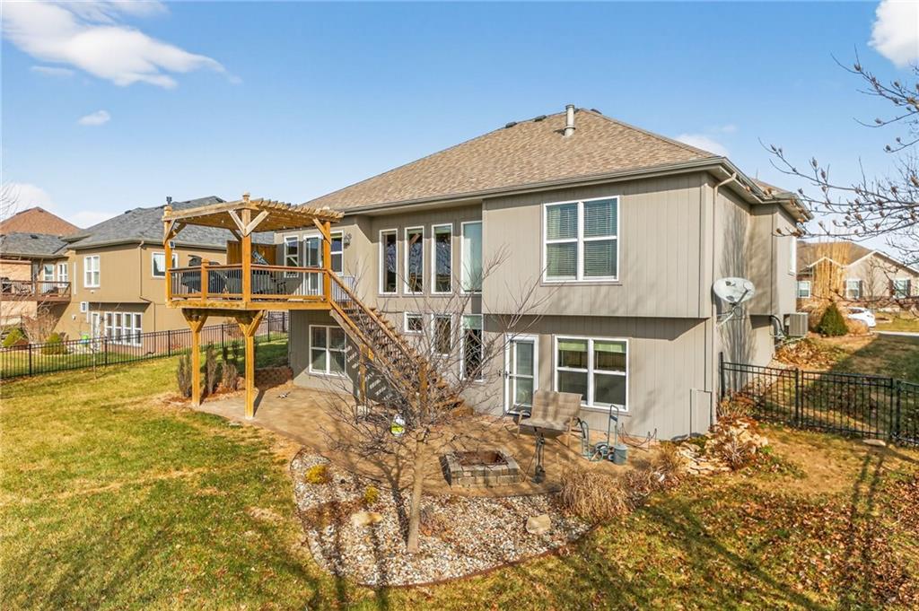 Welcome home to this beautifully maintained reverse ranch in the sought-after community of Kearney, MO, offering space, style, and functionality throughout. This 4-bedroom, 3-bath home features a 3-car attached garage and a spacious open-concept floorplan connecting the kitchen, dining area, and living room-perfect for everyday entertaining. The living room is anchored by a cozy fireplace, while the dining area walks out to a private deck, ideal for morning coffee or evening gatherings. The upstairs primary suite is generously sized with vaulted ceilings and a private bath retreat. The finished lower level expands your living space with a welcoming family room featuring a gorgeous bar, additional bedrooms, and a hidden bonus room perfect for storage, a home gym, or hobby space. The walk-out basement leads to a nicely fenced backyard complete with a paver stone patio and a built-in fire pit, creating an inviting outdoor oasis for all seasons. Located in a highly desirable neighborhood with easy access to schools, shopping, and highways - this home checks all the boxes. Come and take a look! We think you'll love it!
