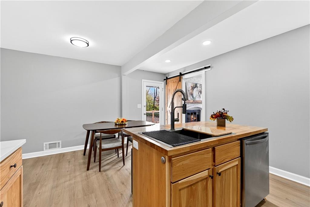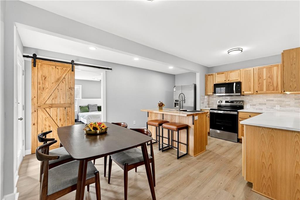 STYLE, SPACE and VALUE come together beautifully in this fully updated ranch—offering incredible versatility at approximately $87 per square foot. With 5 true bedrooms plus a 6th non-conforming bedroom, this home delivers the kind of flexibility today’s lifestyles demand, with room to grow, gather, and truly settle in. The open-concept main level is designed with both everyday living and entertaining in mind. At the heart of the home, the kitchen impresses with brand-new custom cabinetry and a striking statement island—perfect for hosting holidays, weekend brunches, or late-night snacks. The kitchen flows seamlessly into the dining and living areas, where warm finishes and abundant natural light create an inviting, connected space. Step outside to the NEW elevated deck and enjoy peaceful moments overlooking the backyard. Tucked just off the kitchen, the private primary suite offers a quiet retreat from the rest of the home. With THREE dedicated closets, a cozy fireplace, and a stylish en suite bath with tile surround, it’s a space designed for comfort and relaxation. The main level is rounded out by three additional bedrooms and an updated full bathroom, offering plenty of room for family, guests, or home offices. Downstairs a dedicated media area sets the stage for movie nights, while a large bedroom, full bathroom, and an additional expansive family room—filled with natural light—provide endless possibilities. This space could function as a bonus non-conforming bedroom, guest suite, or home studio. The lower level walks out to a covered patio with recessed lighting, creating a private outdoor hangout. With thoughtful updates throughout, including a NEW roof, NEW deck, flexible living spaces, and quick highway access in a convenient location, this home delivers modern comfort, peace of mind, and exceptional value—all while offering privacy for the whole family. Schedule your showing today and experience everything this incredible home has to offer.