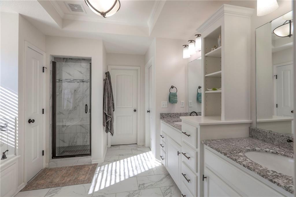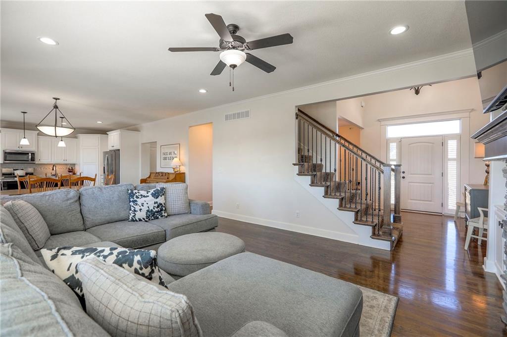 From the moment you arrive, you’ll know you’ve found THE ONE. This pristine, move-in-ready home features an open main level with a spacious living area and a versatile bonus room ideal for an office or formal dining. The main level showcases is the kitchen with custom cabinetry, granite countertops, and hardwood floors (excluding office/dining). The dream kitchen includes a walk-in pantry with extra shelving and grocery door, LED lighting, and easy access to the mudroom and half bath off the deep 3-car garage. Enjoy elevated lake and nature trail views from the deck, patio, and abundant windows throughout. Upstairs the Primary Suite offers a cathedral ceiling, spa-like bath with double vanities, whirlpool tub, tiled shower with dual shower heads and bench, walk-in closet, and double linen closets. The three other spacious bedrooms feature oversized closets, Jack & Jill baths with double vanities, ensuite baths, and a bedroom-level laundry room. Lower level has tons of potential with the opportunity to add a 5th bedroom, full bath, and additional living space in the 1,000+ sq ft walk-out basement, there’s room to grow. High-efficiency HVAC, storm shelter, sprinkler system, underground buried downspouts. Located in Whispering Hills Estates, surrounded by woods and nature, yet conveniently close to Lee’s Summit, highways, schools, dining, and shopping.