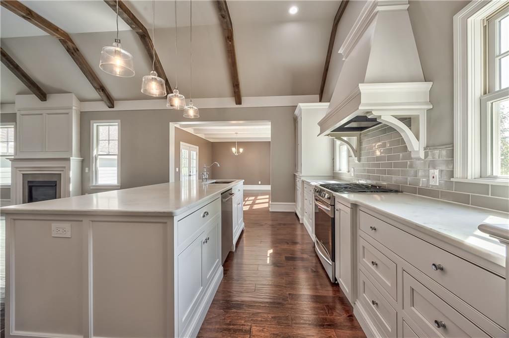 Canyon Creek by the lake is home to this stunning 5-bedroom, 3.5 bath home. The beautiful open floor plan features a graat room with soaring vaulted ceilings and a spacious kitchen flowing into the elegant light filled dining room. The deck is just off the dining room and surrounded on 3 sides by the home, perfect for quiet relaxing. The main-floor primary suite with a luxurious en-suite bathroom is ultimate comfort & convenience. The large backyard is fully fenced. There is a 3-car garage as well as a full basement ready for finishing. This prime Lenexa location is a rare find with high-end finishes and thoughtful design.