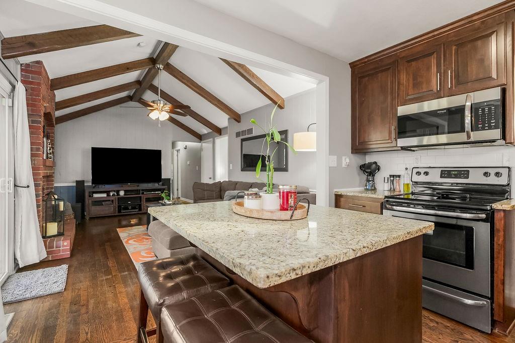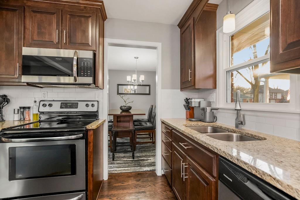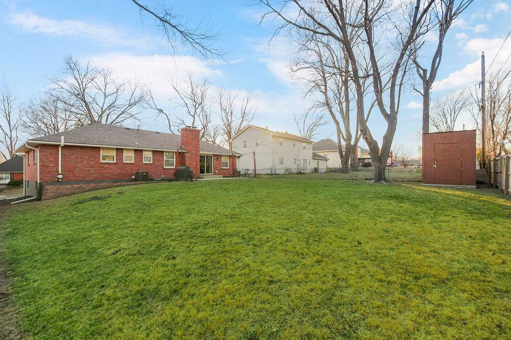 Nestled in the heart of sought after Gladstone MO! This Bold Beautiful Brick Home is perfectly synced in a classically modern style, with thoughtful updates, and new additions. Newly refinished Original Hardwood flooring, Recently Renovated Primary En Suite Bath with an Onyx Tiled Shower and a New Vanity, Granite Countertops throughout, Newly Installed Garage Doors, Fresh Interior and Exterior Paint, New HVAC system, New Water Heater, and Newly added Insulation provide value and comfort to the home. The formal sitting with Stunning Large Bay Windows provide a perfect flexible space for a home office, reading room, or an additional lounge area for entertaining guests. Flowing perfectly is the formal dining area into the culinary kitchen offering up a chef's dream with stainless steel appliances, granite countertops, beautiful shaker cabinetry, and a large center island. The Hearth Room features an vaulted ceilings adorned with beautiful exposed wood beams, a timeless brick fireplace—perfect for cozy evenings in. Large bedrooms, closets, and main level living provide all the convenience. The finished lower level adds a substantial bonus living space with plush carpeted flooring, a second beautiful brick wood-burning fireplace, a Large Commercial Grade Vault, built-ins, large laundry space with a half bath, featuring a new vanity, and ceramic tile flooring. This Wonderful home combines all the modern updates with newly installed big ticket items to provide a peace of mind. Outside, enjoy a large entertainment patio, a fully fenced backyard, with a partial privacy portion, and a new outdoor shed. Do not want to miss this Gorgeous HOME!!