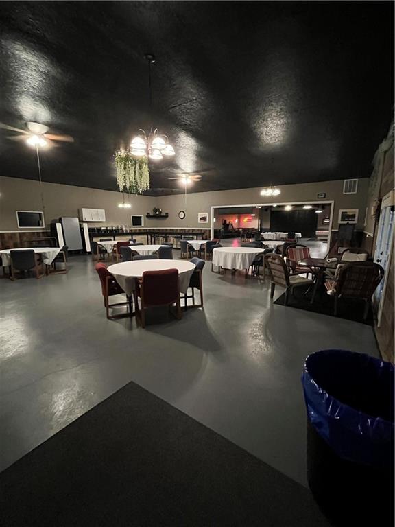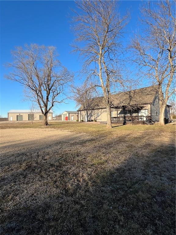 Welcome to this exceptional two-story property, beautifully set on 13 acres. The 4-bedroom, 2-bath home offers an updated kitchen, generous living space, abundant closets, and an inviting upstairs common area—perfect for a game room, media lounge, or quiet retreat. An attached two-car garage includes a built-in safe room, adding peace of mind to everyday living. Beyond the home, the property truly shines. Two detached shops open the door to endless possibilities. One shop is thoughtfully designed with two separate entertainment spaces that seamlessly flow together, complete with a half bath—ideal for gatherings, events, or even a private venue. The second shop features a gravel floor and pew-style seating, lending itself beautifully to ceremony settings, creative uses, or impressive storage. The outdoor space is just as captivating, with expansive yard areas, designated outdoor seating for events, and a serene pond-side seating area perfect for hosting or relaxing. Farther back on the property, an additional quiet seating spot offers a peaceful place to fish, unwind, or simply enjoy the natural surroundings