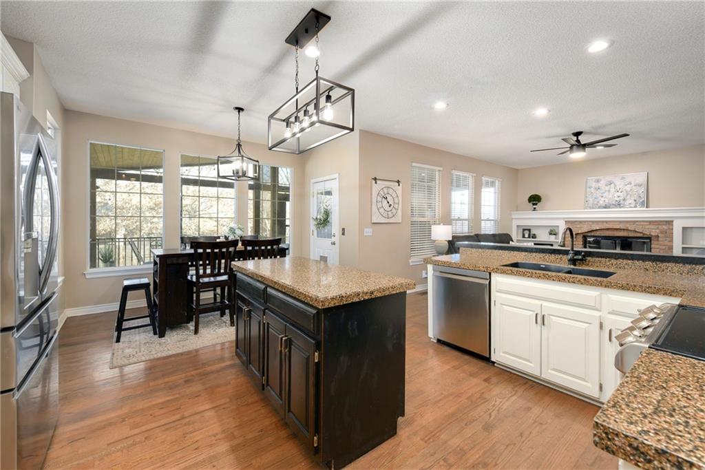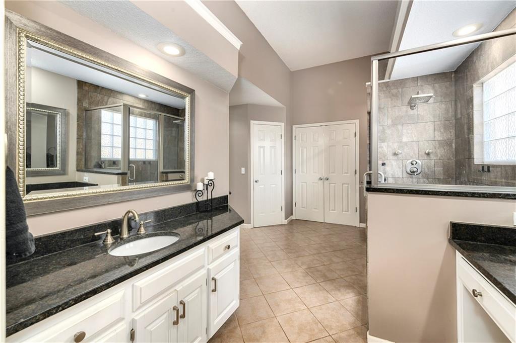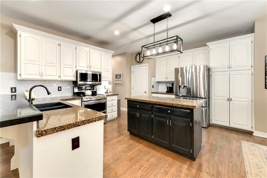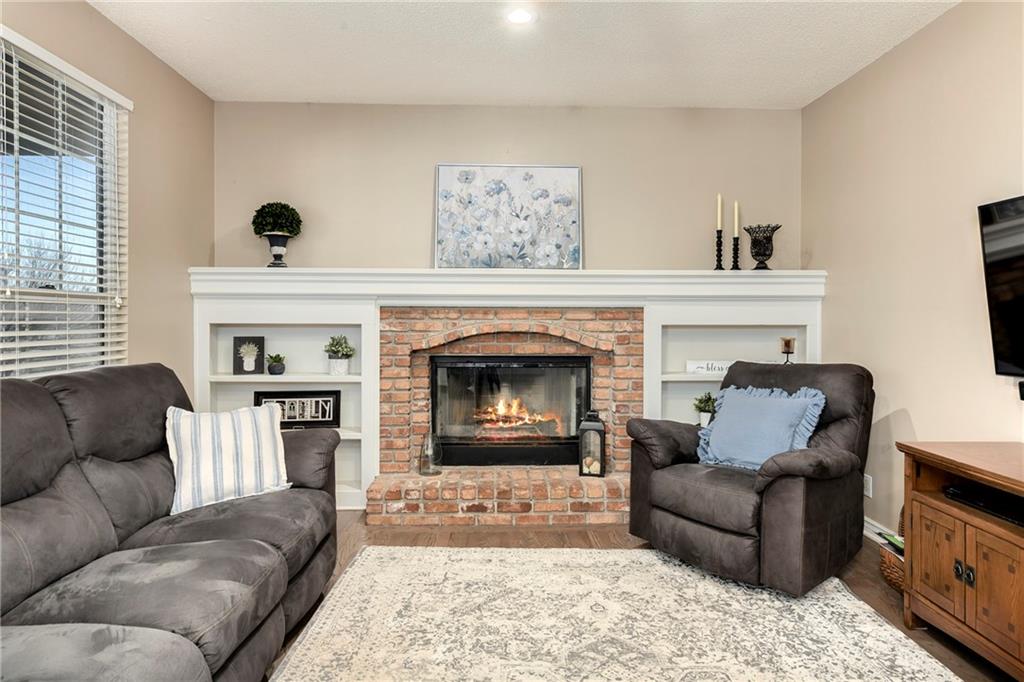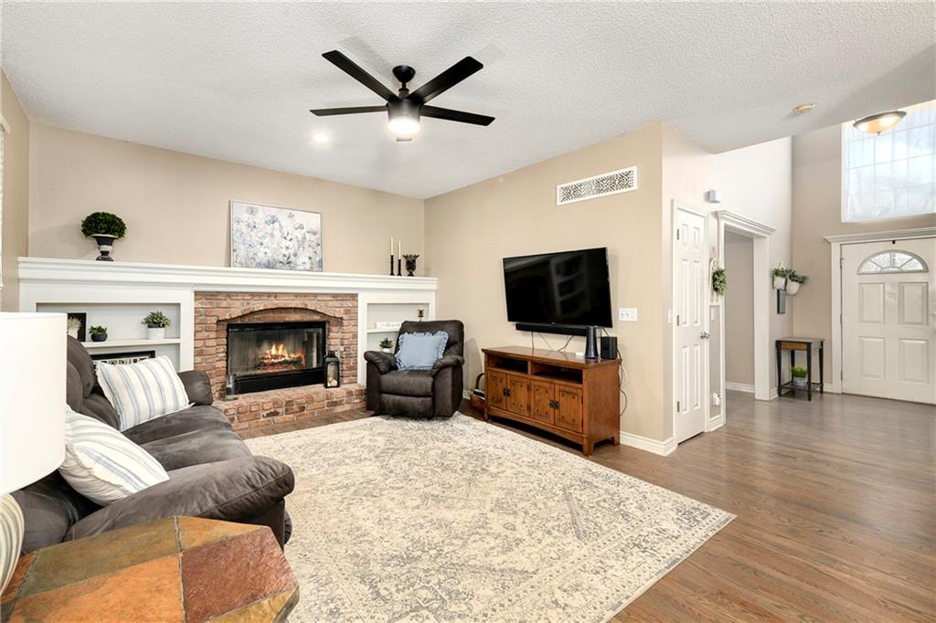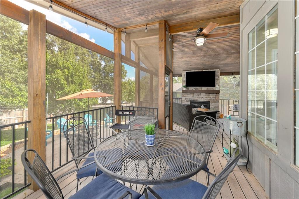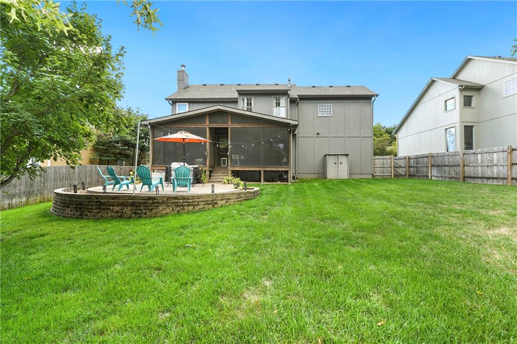 Wonderful, move-in ready 2-story brimming with curb appeal in sought-after Eastbrooke! Tucked into a fantastic cul-de-sac with exceptional outdoor living spaces, this beauty truly checks all the boxes! Prepare to be wowed by the expansive screened porch with fireplace, screened composite deck, and large custom patio, all set within a private, fenced backyard—perfect for everyday enjoyment as well as entertaining. Meticulously maintained by the original owners, this home features thoughtful updates throughout including hardwood floors spanning the entire main level and newer windows and lighting across most of the home. The main level offers a formal dining room, a formal living room, and relaxing great room with fireplace and built-in bookcases. The updated kitchen showcases white cabinetry, a contrasting black center island, stainless steel appliances including a double oven, and a bright breakfast room with serene views. Upstairs, the primary suite is a true retreat with a vaulted ceiling, sitting area, two walk-in closets, and a stunning remodeled bath featuring dual vanities and a custom walk-in shower. All secondary bedrooms include walk-in closets, and the laundry room is conveniently located on the bedroom level. The finished lower level adds valuable living space with a large rec room featuring epoxy floors, a half bath, and abundant storage. Unbeatable location—walk to all three Olathe District schools and Eastbrooke Park, with quick access to highways, shopping, and dining. A fresh, modern and meticulously maintained place to call home in a highly desirable neighborhood!