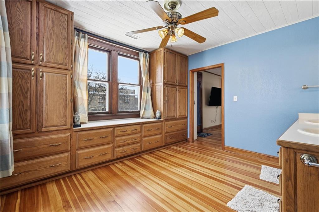A rare opportunity to own a landmark home in one of Excelsior Springs’ most desirable locations. Built in 1917 as the rectory for the former St. Anne’s Catholic Church next door, this Colonial Foursquare home blends architectural heritage with extensive modern updates. Offering 4 bedrooms and 3.5 baths, the layout includes a living room, library, den, and multiple secret nooks for quiet escapes—hidden under the stairs and within an upstairs closet. A large east-facing sunroom captures the rising sun and provides a peaceful daily retreat. Two primary bedrooms—one on the main floor and one upstairs—offer flexibility for families, guests, or multi-generational living. The upstairs primary bath features a walk-in shower with dual shower heads, while the modern kitchen anchors the home for everyday life and entertaining. An unfinished, oversized walk-out upper deck awaits the next owner’s vision—ideal for a rooftop lounge, garden retreat, or entertaining space. Outside, the home features a shaded back and side yard with mature trees, recently trimmed and groomed for health and light. A small back deck and barbecue area with paving stones provides an additional outdoor gathering space and offers an opportunity for light improvement or customization. Major systems updated within the last two years include roof, dual HVAC and heating systems, tankless hot water heater, plumbing, and central vacuum. Beautifully restored hardwood floors run throughout, preserving the home’s original character. The location is exceptional: directly across from the historic The Elms Hotel and Spa, with a new elementary school immediately behind the home, and just steps from downtown Excelsior Springs and Siloam Mountain Park. Perfect for couples or families, this property is also well-suited for an Airbnb or short-term rental setup.