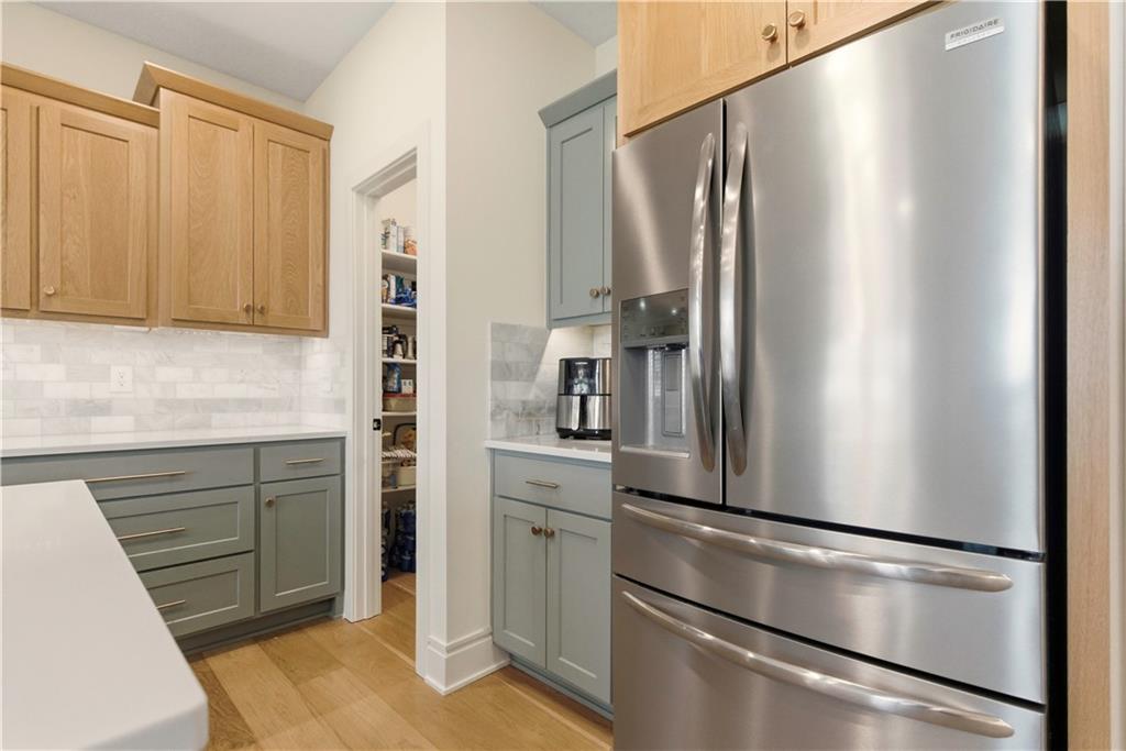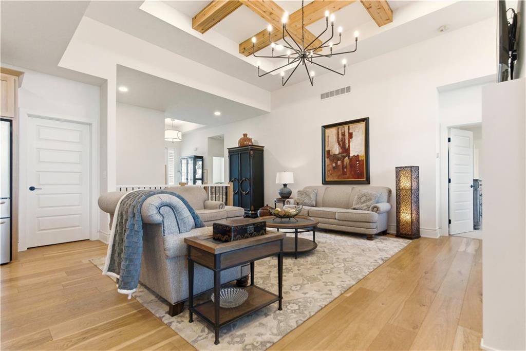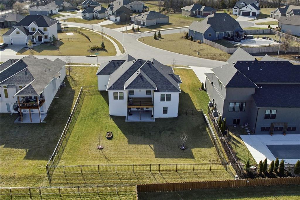Better than New! Gorgeous Ranch home with Finished Walkout on Large Fenced Yard. Prepare to be impressed with this nearly new home with soaring 13' Ceilings, an Open Floorplan, Abundance of Windows, Amazing Wide Plank White Oak Floors on Main Level, Eye Catching Wood Beams in Great Rm Ceiling, Beautiful Wood Accents such as Windows Seats, & Plantation Shutters. Curb Appeal & the Exterior is Awesome with Timber Entrance, Huge Covered Deck, Large Patio and fully Fenced Yard. You will love the Kitchen with a Huge Quartz Island, Custom Cabinetry, Pantry,6 Burner Gas Cooktop; which opens to a lovely Breakfast area. This true Ranch is home to the Primary Bedroom and 2 additional Bedrooms on the Main Level. The Primary Bathroom will not disappoint with Quartz Counters, Large Soaking Tub, Spacious Tile Shower, and Real Stone Floors. Your Entertaining space greatly expands with a Finished Walkout offering a Large Family Room and 2nd Kitchen with Quartz Counters and areas appointed for a mini Refrigerator and Dishwasher. Note very nearby storage allows space for a Full Sized Refrigerator. 2 Spacious Bedrooms and Bathroom with adjoining exterior Patio complete the Lower Level that is perfect for a Separate Quarters. Here is your chance to skip the building process and enjoy all the perks of a nearly new home that already has the landscaping, window treatments, and all those needed home owner adds once you first move in while enjoying all the amenities of Lee's Summit and nearby Legacy Park!