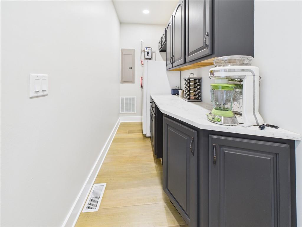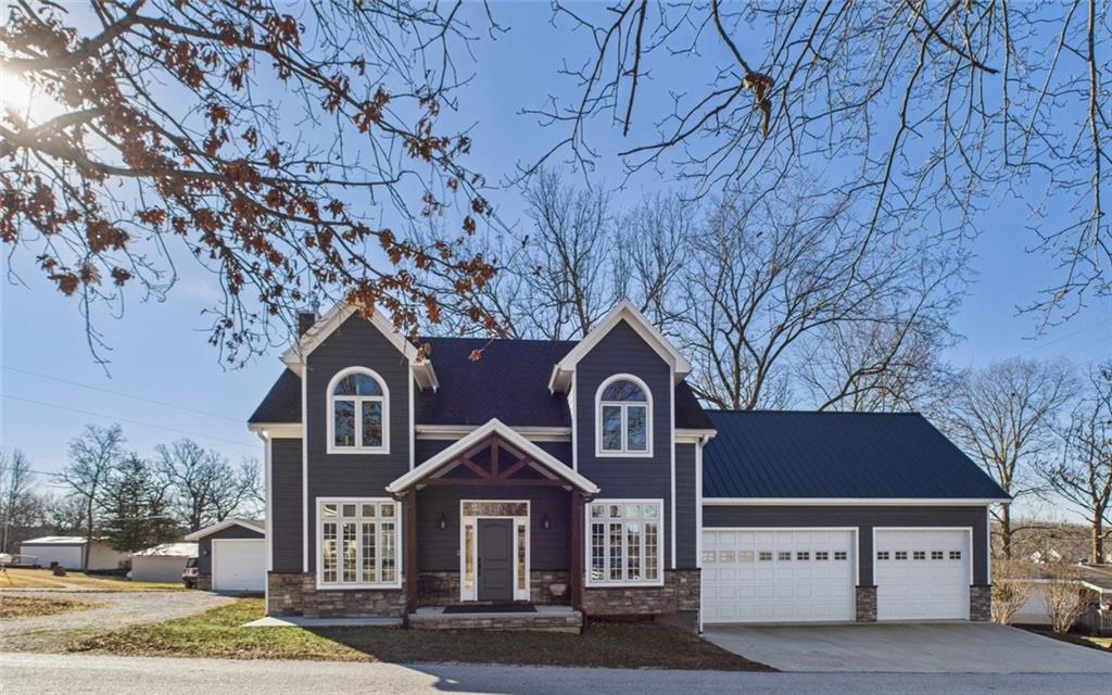 Built in 2022 and situated on approximately 0.34 acres, this beautiful 3-bedroom, 2-bath home is located in the desirable Paradise Point subdivision. (3rd bedroom does not have a window) The seller truly spared no expense with upgrades throughout the home. The entry welcomes you into an open floor plan with soaring cathedral ceilings and large windows that flood the home with natural light. The living room is cozy and spacious with a wood-burning fireplace sitting perfectly between the living and dining rooms, creating a warm and inviting atmosphere. The dining room features tall, elegant windows and a French door that opens to a large deck and flows seamlessly into the spacious kitchen, making it ideal for entertaining. The kitchen offers an abundance of tall cabinetry, large island with additional seating and elegant granite countertops. Just off the kitchen is a large pantry/laundry room with granite countertops and additional storage. The spacious main-level primary bedroom features a full bath with granite countertops and a tiled walk-in shower. Upstairs, you’ll find a loft overlooking the main living area, two spacious bedrooms, and a large bathroom featuring granite countertops and a dedicated makeup vanity. One upstairs bedroom includes pull-down attic access for extra storage. The attached garage is approximately 740 square feet with tall ceilings, two garage doors, and a built-in tornado shelter located in the floor of the garage. Between the home and the detached garage is a circle drive for additional parking. The detached shop with concrete flooring offers an additional 190 square feet of workspace or storage. This home is part of the Paradise Point subdivision in Warsaw, MO, on the Upper Osage Arm of the Lake of the Ozarks. The community offers lake access, private docks, and close proximity to marinas and swim beaches—perfect for boating, fishing, and lake living.