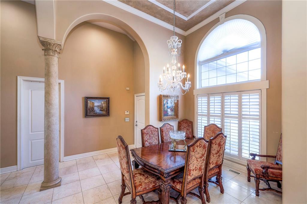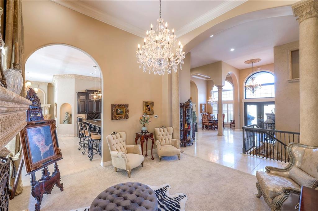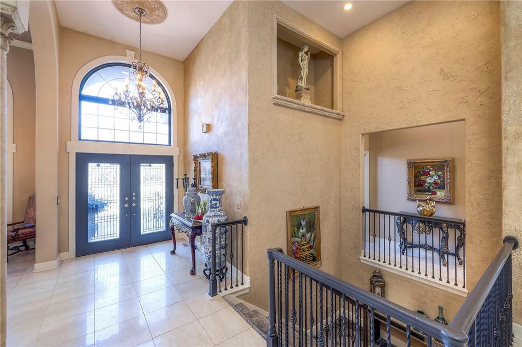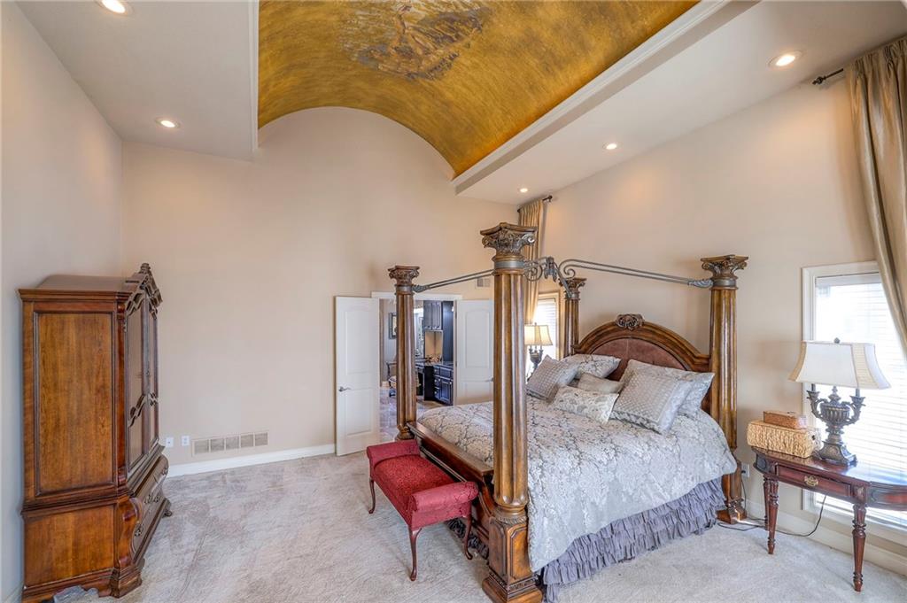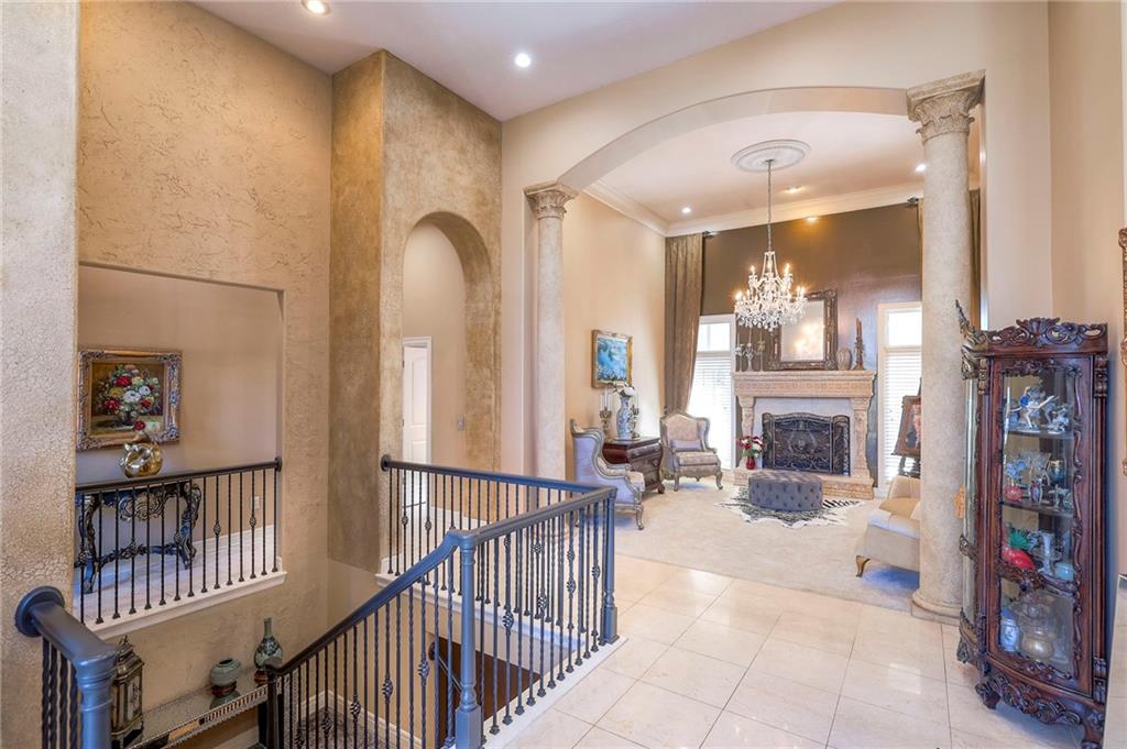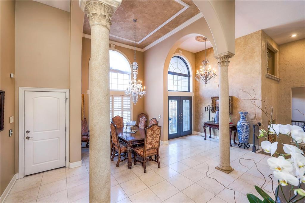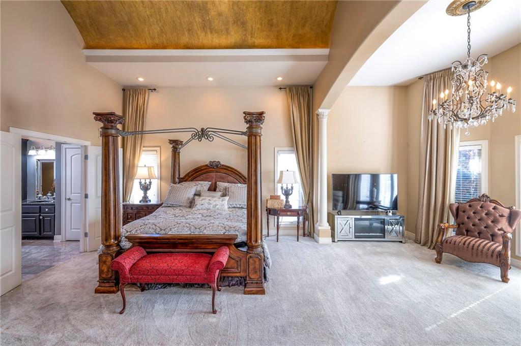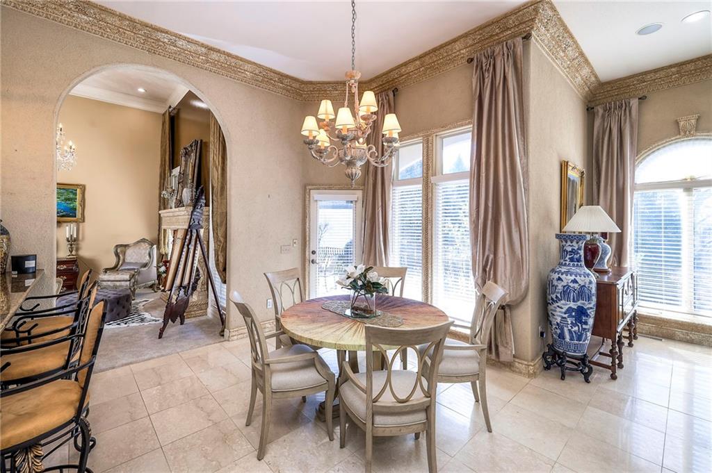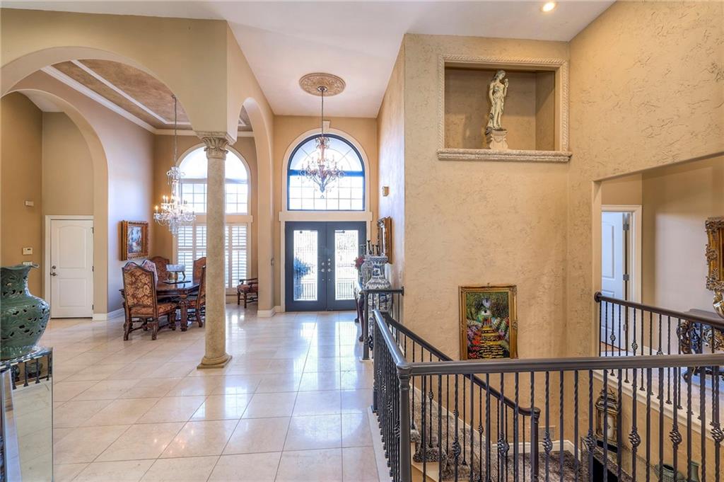 This stunning 6,000+ sq ft reverse story-and-a-half residence blends timeless elegance with refined European flair, offering luxury, comfort, and exceptional design at every turn. Featuring 5 spacious bedrooms and 4 full baths plus a powder room (4.1 baths), the home is thoughtfully designed for both everyday living and grand entertaining. The main level showcases expansive living areas with beautiful tile floors, soaring ceilings, and abundant natural light. The gourmet kitchen is appointed with rich granite countertops, custom cabinetry, premium appliances, and generous workspace—perfect for hosting or preparing family meals in style. The reverse story-and-a-half layout places the luxurious primary suite and key living spaces on the main level, while the lower level opens to additional bedrooms, recreation space, and a full secondary kitchen—ideal for multi-generational living, guest quarters, or extended entertaining. The lower level also features a dedicated media room, creating the ultimate private theater experience for movie nights and game days. Architectural details throughout the home reflect classic European influences, from elegant finishes and refined textures to graceful design lines that add warmth and sophistication. With its expansive square footage, high-end finishes, and versatile living spaces, this exceptional home offers both grandeur and functionality—perfect for those who appreciate luxury with distinctive European character.