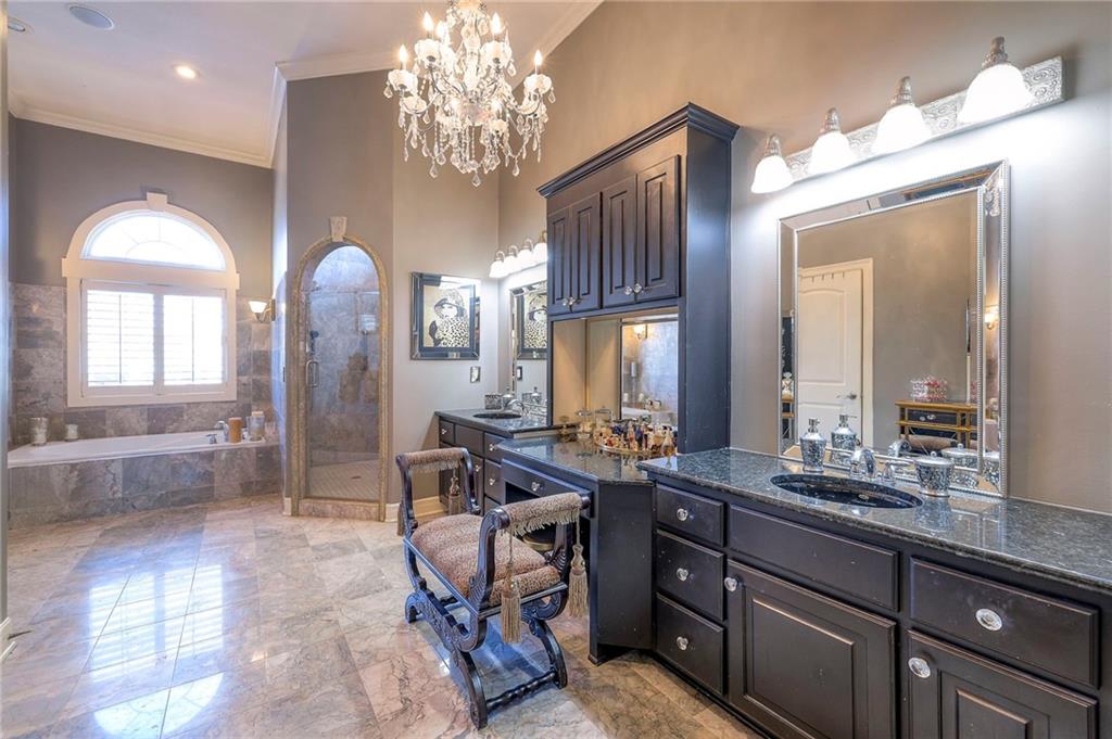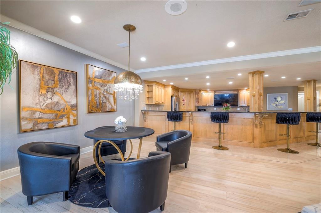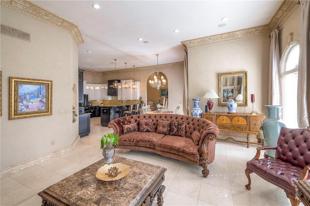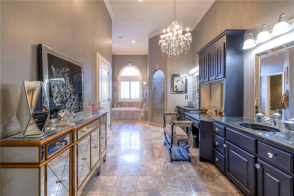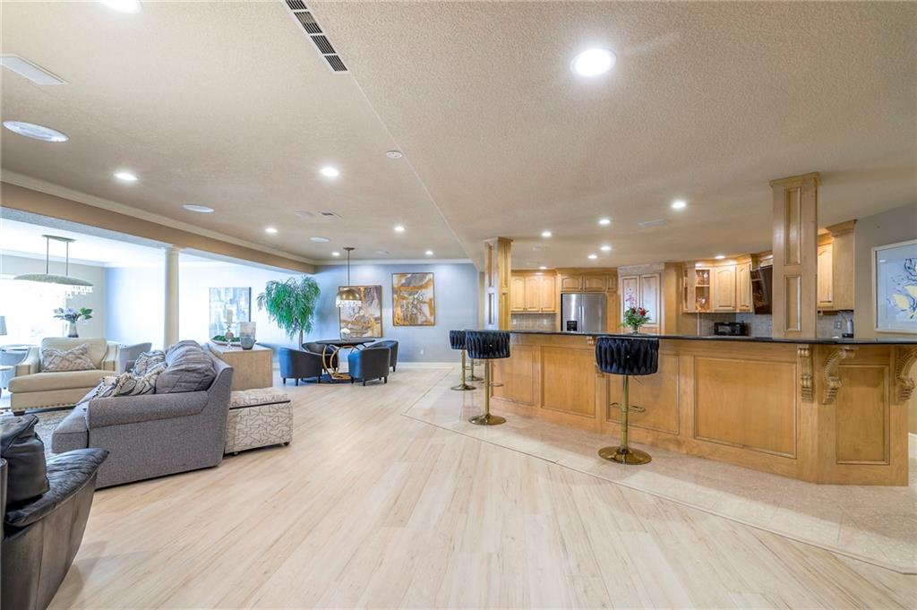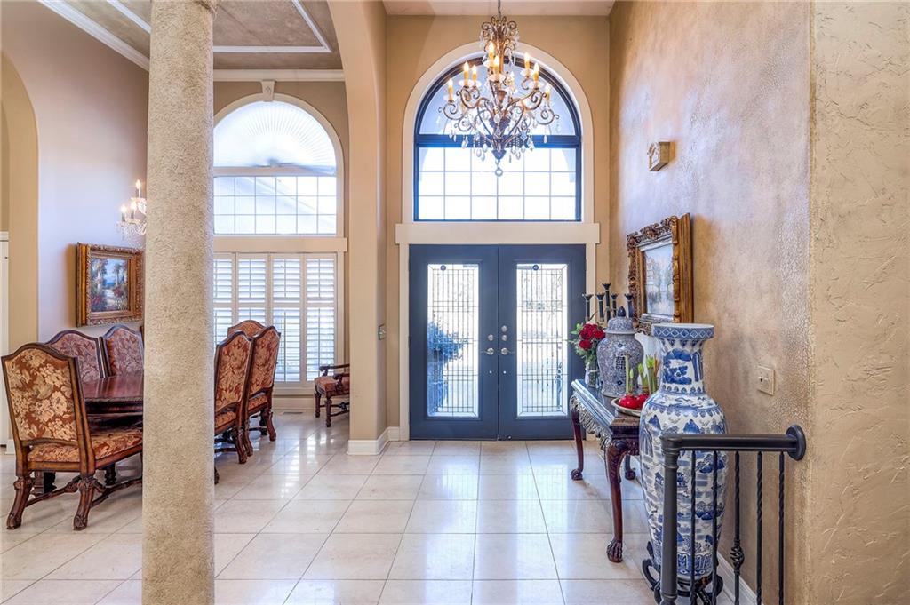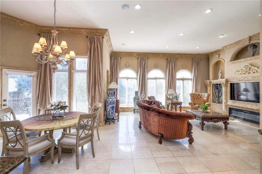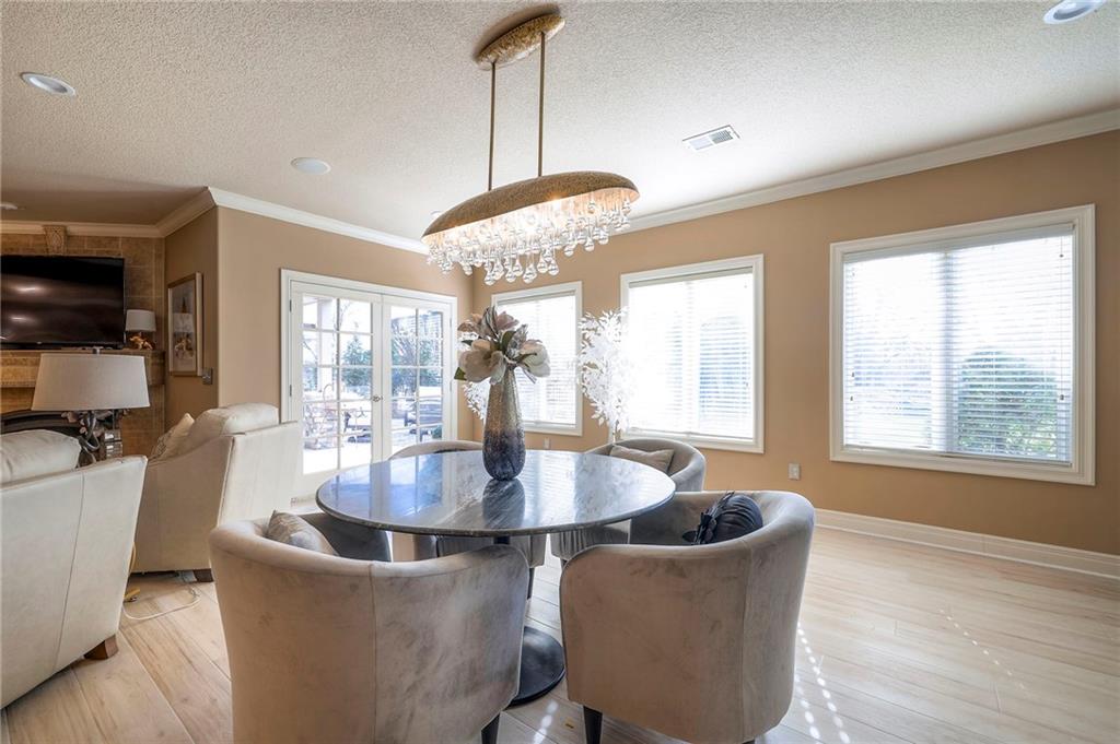 This stunning 6,000+ sq ft reverse story-and-a-half residence blends timeless elegance with refined European flair, offering luxury, comfort, and exceptional design at every turn. Featuring 5 spacious bedrooms and 4 full baths plus a powder room (4.1 baths), the home is thoughtfully designed for both everyday living and grand entertaining. The main level showcases expansive living areas with beautiful tile floors, soaring ceilings, and abundant natural light. The gourmet kitchen is appointed with rich granite countertops, custom cabinetry, premium appliances, and generous workspace—perfect for hosting or preparing family meals in style. The reverse story-and-a-half layout places the luxurious primary suite and key living spaces on the main level, while the lower level opens to additional bedrooms, recreation space, and a full secondary kitchen—ideal for multi-generational living, guest quarters, or extended entertaining. The lower level also features a dedicated media room, creating the ultimate private theater experience for movie nights and game days. Architectural details throughout the home reflect classic European influences, from elegant finishes and refined textures to graceful design lines that add warmth and sophistication. With its expansive square footage, high-end finishes, and versatile living spaces, this exceptional home offers both grandeur and functionality—perfect for those who appreciate luxury with distinctive European character.