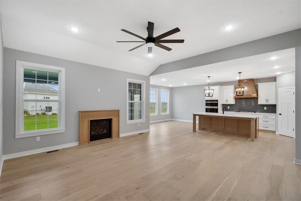 Lot 41 - True Ranch home built by Jim Perry Homes with a finished lower level. Sits on a cul-de-sac daylight lot. FINISHED PHOTOS OF A PREVIOUS and SMALLER MODEL. This one is an EXPANDED version of those photos. Estimated Completion is late May 2026. Three Bedrooms & 2 Baths on the main level! Spacious Living Room with fireplace, open to the amazing Dining Area & Kitchen. The Kitchen has a large quartz topped island, gas cooktop and abundant counter space/cabinets. Primary suite includes large bedroom, walk in shower, and walk in closet. Nice covered deck! Lower Level has a fabulous Rec Room including a nice wet bar area and Two more Bedrooms with walk in closets and a third full Bath. 3 Car Garage. Sprinkler System. Enjoy golf course living in a great location, close to everything! Convenient highway access. Ten minutes to the Legends and 30 minutes to the airport and most other parts of the metro area and to Lawrence. Community pool, play and picnic area, tennis, basketball and pickleball courts. Area restaurant open to the public. Acclaimed Basehor-Linwood Schools! HOA also covers lawn maintenance (mowing/trimming/blowing, weed and feed, sprinkler turn off/ turn on, landscape maintenance) and snow removal over 2 inches.