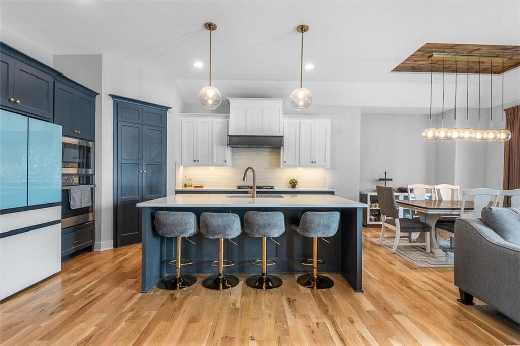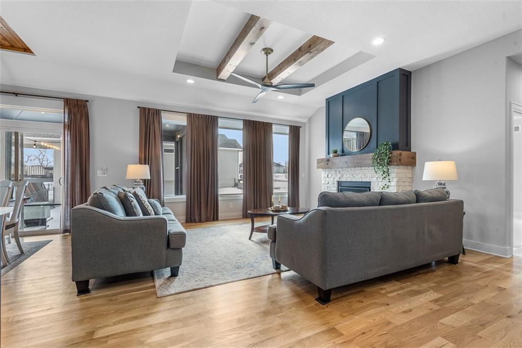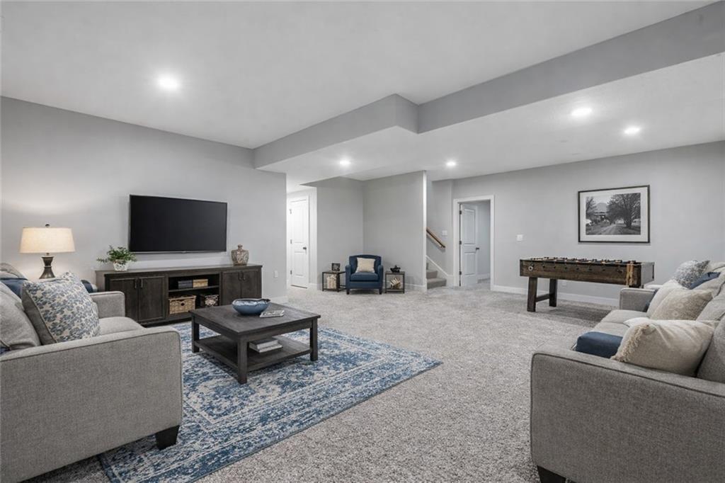 Beautiful, large bedrooms 4 + 1 (non-conforming) = 5 possible bedrooms, 3 bathrooms, Reverse 1.5-story home with 2 walk-in closets in Primary Bedroom! The open main level seamlessly connects the kitchen, dining, and living areas, showcasing hardwood floors, vaulted ceilings, updated trim, and abundant natural light. The gourmet kitchen is a chef’s dream, featuring quartz countertops, tile backsplash, gas cooktop, large walk-in pantry, and generous workspace—perfect for entertaining. Family Room stuns with a floor-to-ceiling fireplace, vaulted ceilings accented by wood box beams, designer ceiling fan, and custom window coverings. An office tucked to the side offers the perfect private workspace. The Primary Suite is a true retreat with vaulted ceilings, a luxurious stand-alone soaker tub, separate tiled shower with dual shower heads, two vanities, and again TWO walk-in closets. The main-floor laundry offers convenient direct access from the primary closet. The finished lower level provides a spacious rec room, already stubbed for a future bar, along with three additional bedrooms (one non-conforming), a full bath, and plenty of storage space. Relax and enjoy your morning coffee on the screened-in covered deck. Brookwood Farms is an active, social community offering amenities for all ages, including a community pool and cabana, playground, fishing pond, and walking trails. Come see everything this beautiful home—and Brookwood Farms—has to offer!