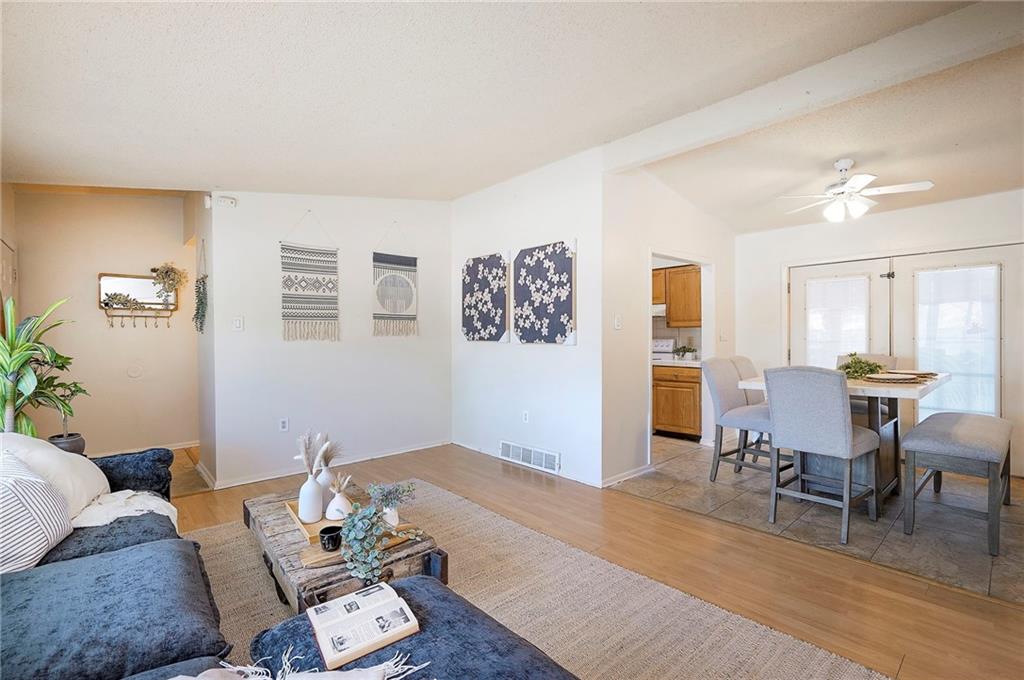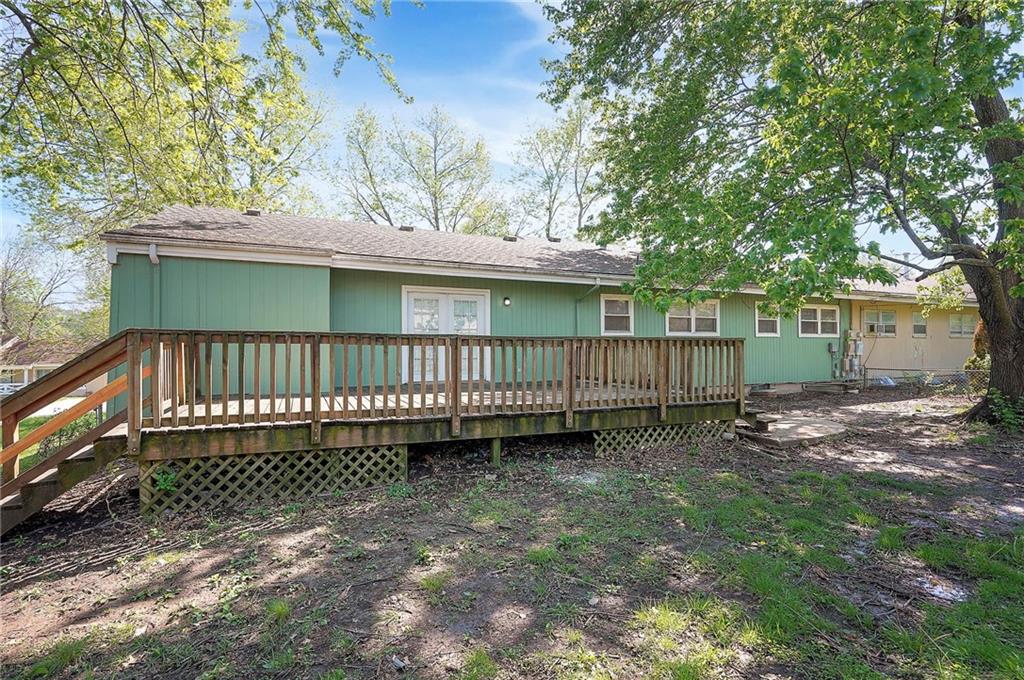 Honey, stop the car! This fantastic 4-bedroom, 2-bath half-duplex in Belton is the move-in ready home you've been searching for, complete with fresh paint inside and out. Step inside to an open and bright living room, filled with natural light from newer windows and showcasing gleaming hardwood floors that extend throughout the home. The kitchen is equipped with durable ceramic tile floors, matching ceramic countertops, a stylish backsplash, and offers a pleasant view of the backyard. From the dining area, elegant French doors lead out to a spacious deck—perfect for unwinding or hosting guests—which overlooks the private, fenced-in yard. All four spacious bedrooms feature beautiful hardwood floors and ceiling fans. The home includes two full bathrooms for your convenience: the hall bath offers a classic shower-over-tub combination with full ceramic tile, while the second bathroom features a modern walk-in shower. Unlock incredible potential in the full unfinished basement! Featuring an egress window, easy plumbing access for an additional bathroom, and a sump pump, this space offers the opportunity to add nearly 600 square feet of living area and build instant equity. Don't miss this fantastic opportunity