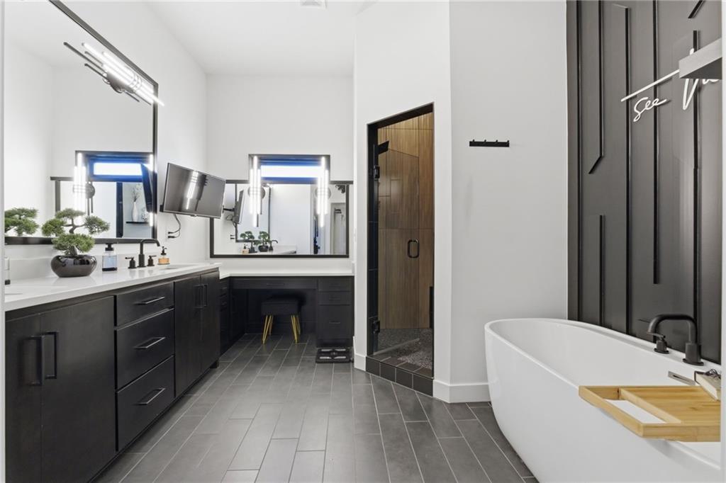 Are you dreaming of building a home in one of Lee’s Summit’s most desirable communities? There’s no need to start from scratch. This BEAUTIFUL and IMMACULATE 2 story home in Monticello is just 4 years old and filled with high-end upgrades, stylish designer finishes, and carefully selected details—offering all the benefits of new construction without the wait, hassle, or extra costs. You'll love the soaring high ceilings as you step into the Great Room with custom lighting, tons of natural light from oversized windows, and a unique floor to ceiling fireplace with built ins. Quality hardwood flooring runs throughout the main level. The fully equipped kitchen boasts bright white quartz countertops, rich, dark custom cabinetry, indirect lighting, and high end appliances, including a gas cooktop. The kitchen island is massive with plenty of room for entertaining. The kitchen also has a large walk in pantry, as well as a convenient second pantry closet. The upper level has 3 bedrooms, including the stylish primary bedroom with onsuite bath, offering all of the comforts you would expect. The lower level provides plenty of additional living space including a spacious family room with wet bar, game room, the fourth bedroom, and full bath. Additionally there is a generous unfinished storage area. Step out of the large, oversized sliding glass doors in the Great Room and enjoy the peaceful and secluded outdoor space of this home, featuring a huge 20 X 10 covered deck, along with a retractable awning to offer even more shade and comfort. Relax in the 6 person hot tub, which stays with the home. You’ll love the view of the scenic oversized pond just beyond the backyard, complete with walking trails as well as fishing. Monticello is a beautiful newer single family community in Lee's Summit with trails, a pool, and ponds near Fleming Park. Enjoy all the services and amenities this neighborhood has to offer.