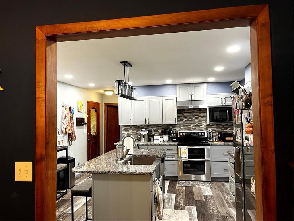 This 4-bedroom, 3.5-bath ranch home is located just a block and a half from the Belleville town square, offering easy access to local shops, dining, and community events. The kitchen was fully remodeled in 2023, bringing a modern touch to the main level, while the finished basement—partially updated starting in 2021—adds flexible space for a family room, office, or guests. Outside, you'll find a spacious two-car garage, a fenced backyard, and a small outbuilding for storage or hobbies. With a practical layout and thoughtful updates, this home blends function, location, and comfort in the heart of the county seat.