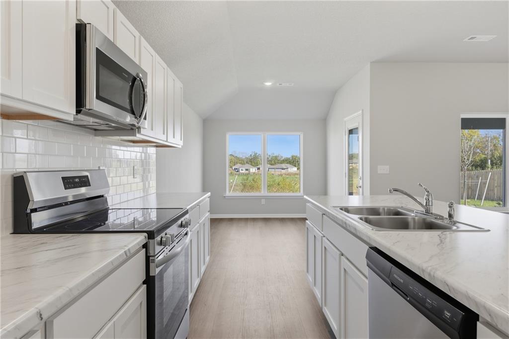 Introducing the Fenway — a charming ranch-style home offering comfortable, single-level living with thoughtful design throughout. This 3-bedroom, 2-bath home includes a 2-car garage, a welcoming covered front entry, and a covered back patio perfect that faces a large green space for outdoor enjoyment. The kitchen features a central island that overlooks the spacious living area, creating an ideal space for entertaining or everyday living. With LVP floor throughout the kitchen, dinning room, and living room. The primary suite is tucked away for privacy and includes a walk-in closet and a private bath with a walk-in shower. Two additional bedrooms and a full bathroom provide plenty of space for family, guests, or a home office. Whether you're relaxing on the back patio or enjoying the flow of the open living spaces, the Fenway offers the perfect blend of comfort and convenience. Photos and virtual tour may be of a previously sold model, finishes and color selections may vary.