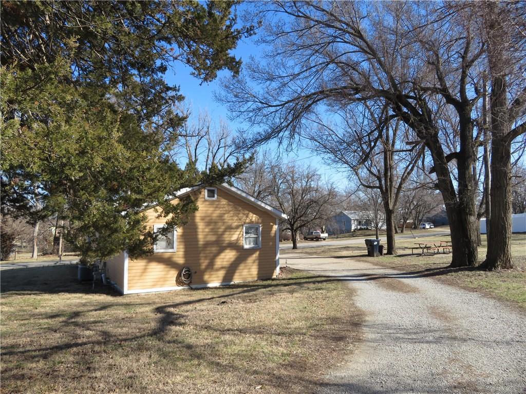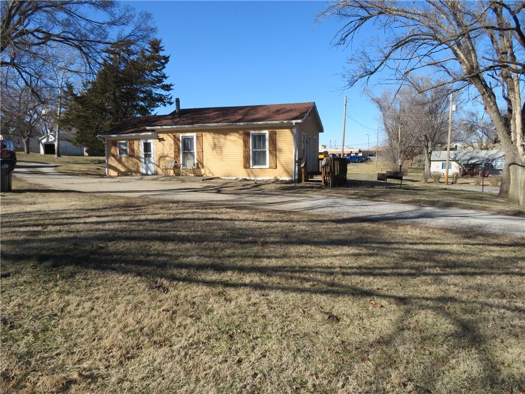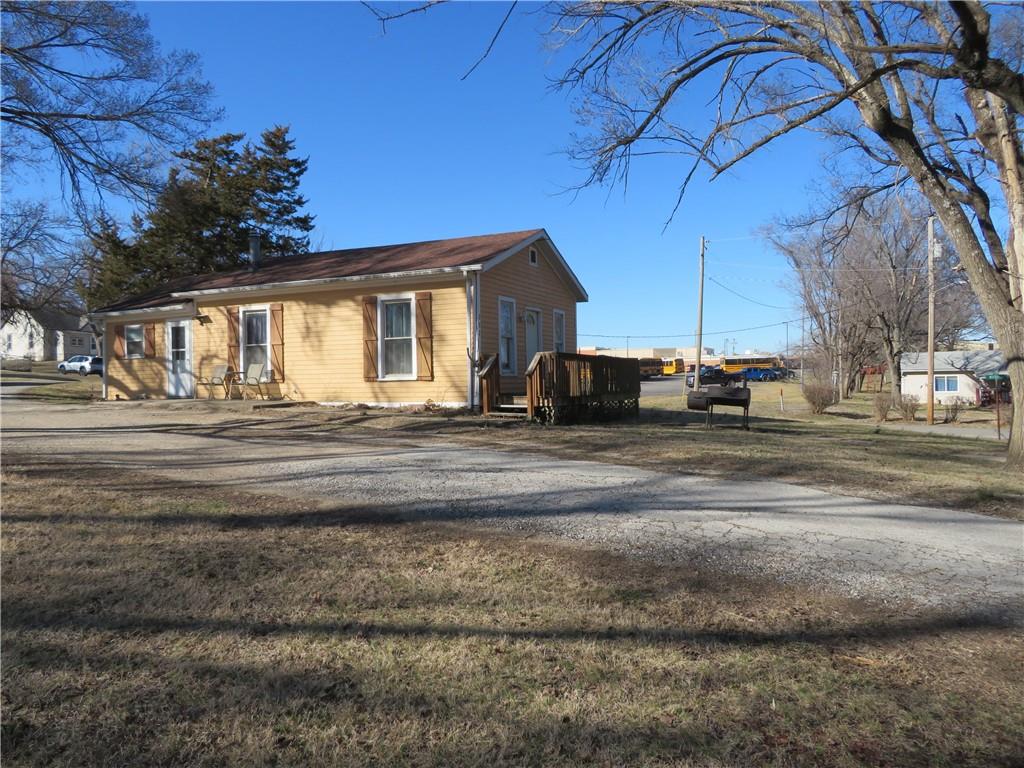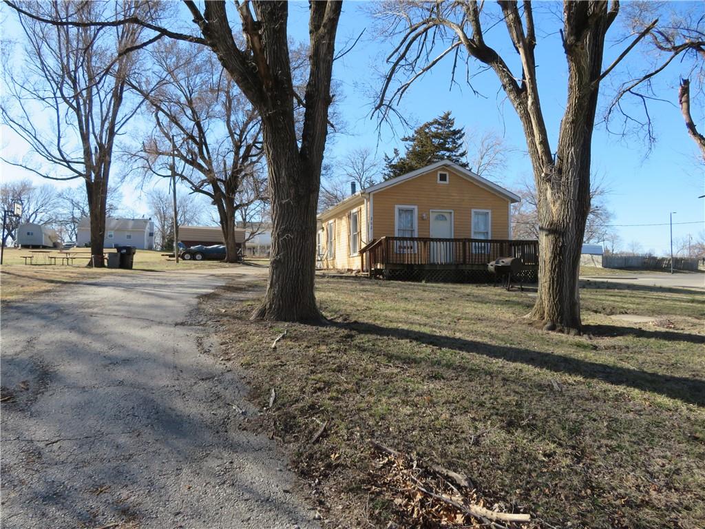 Neat 2 bedroom, 1 bath Bungalow. Open floor plan provides one level living at its best. Super large 3-lot corner lot. Lots of space to expand. Concrete pad with basketball goal, patio and front deck. Close to schools, easy access to US Hwy 59. Easy commute to Lawrence, Topeka or Kansas City. Great Investment