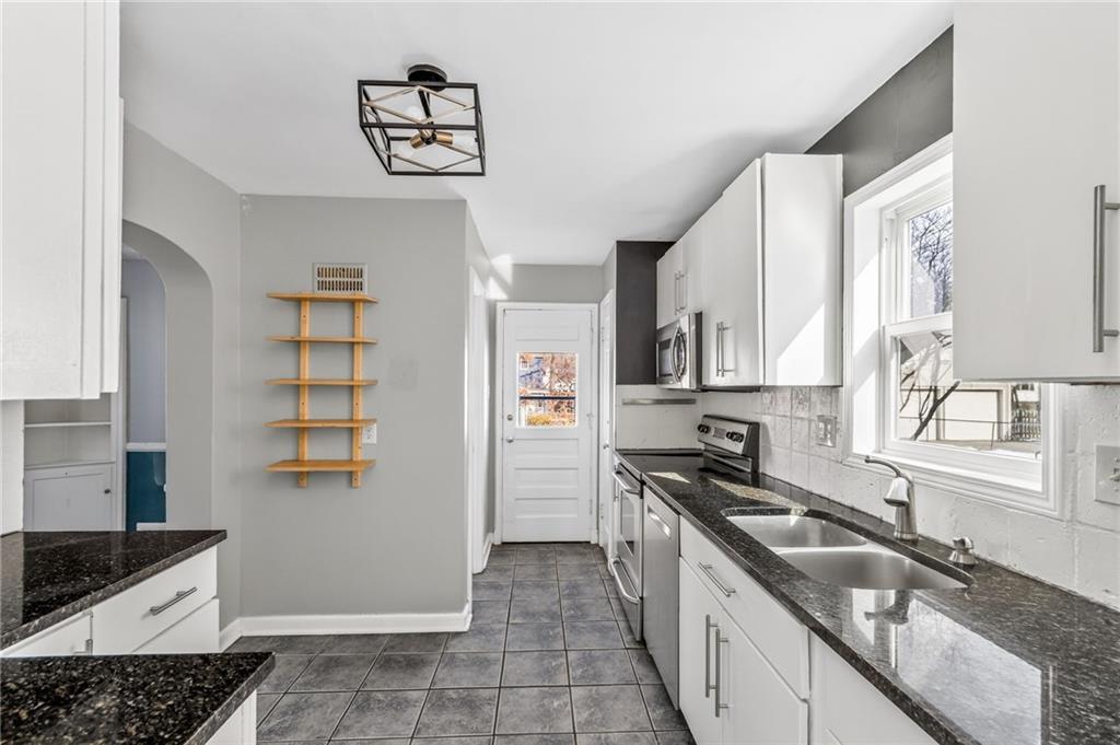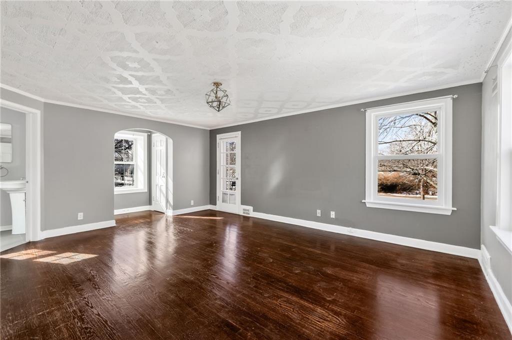 This charming 2-story home built in 1940 exudes character, blending historic details with thoughtful modern updates. The inviting, picturesque front porch welcomes you into a spacious family room filled with natural light, featuring a wood-burning fireplace, built-in bookshelves, and access to an enclosed side porch. A large formal dining room offers the perfect setting for gatherings, while the updated kitchen impresses with granite countertops, stainless steel appliances, soft-close cabinets and drawers, and a pantry. A cozy eat-in breakfast nook with built-ins adds even more charm. Gorgeous hardwood flooring, textured ceilings, and updated light fixtures run throughout. The primary bedroom features double closets, a full bath, and access to the roof deck. Secondary bedrooms are generous in size with ample closet space. The finished lower level offers a fun, spacious rec room complete with a wet bar and built-ins—ideal for entertaining or relaxing. Enjoy outdoor living in the manicured, fenced backyard with a patio and stone paver walkway. The expanded 2-car garage provides extra space, plus there’s an extra-wide private driveway. Major updates include roof, furnace, hot water heater, Hardie Board siding, Andersen thermal windows, and more. Prime location with convenient access to The Country Club Plaza, Brookside, and all the amenities you love. Don’t miss this one—it’s full of charm, space, and style!