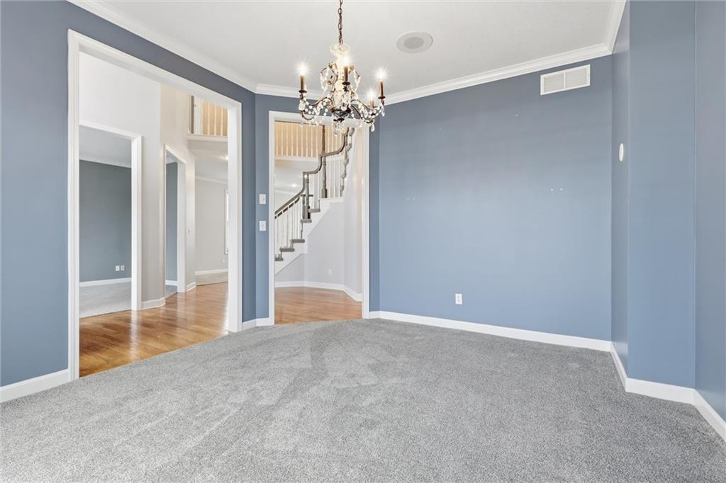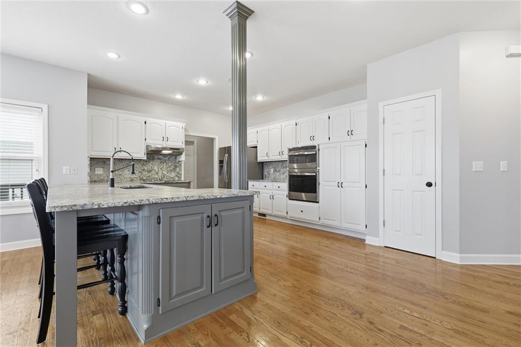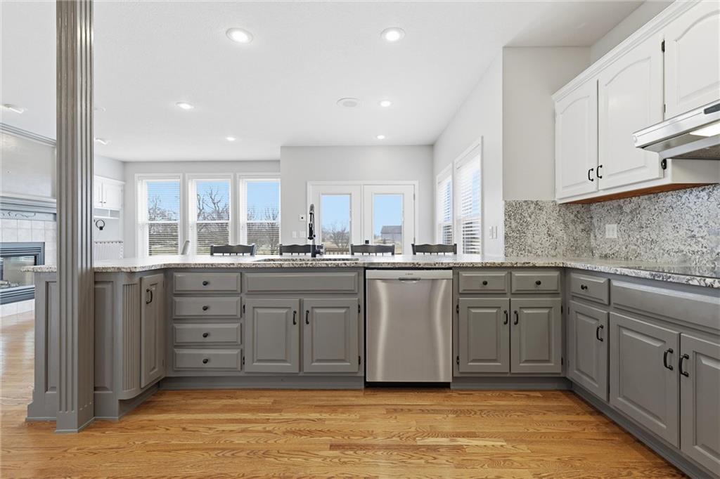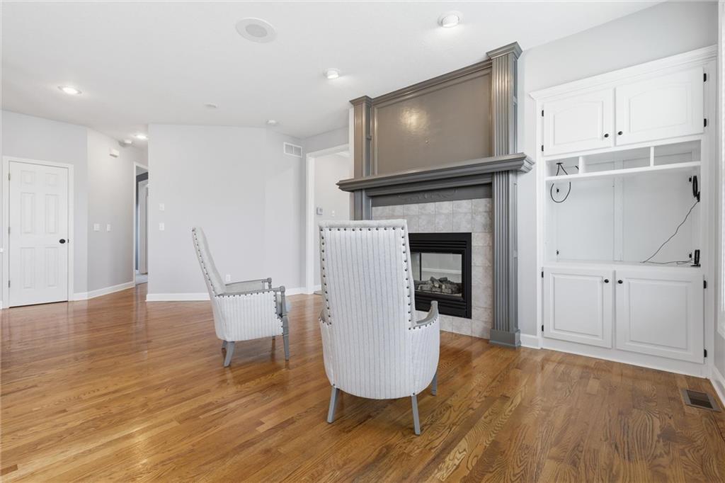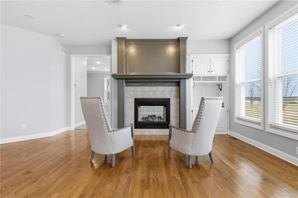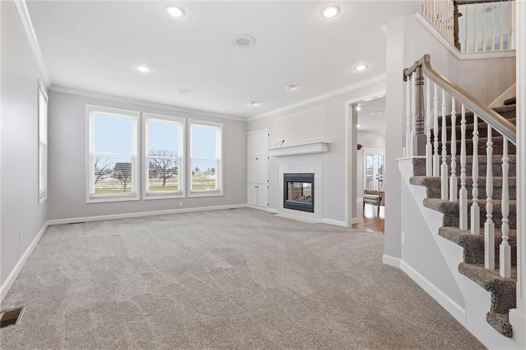 Experience refined living in this two-story home perfectly positioned at Country Creek Estates overlooking the 4th fairway of The Rock and facing the 4th fairway of Hoots Hollow. With 4 spacious bedrooms, 4 full baths, and 1 half bath, this residence offers an exceptional blend of luxury, comfort, and functionality. The main level welcomes you with a grand entryway leading to a formal dining room and an inviting living area featuring a see-through fireplace shared with the cozy hearth room. The kitchen offers updated finishes, abundant cabinetry, and a seamless flow into the hearth room—ideal for entertaining. A dedicated office provides a quiet workspace, while a versatile flex room downstairs offers endless possibilities for a playroom, gym, or hobby space. The primary suite is a private retreat with its own fireplace, ensuite bath, and generous walk-in closet. Bedroom 2 has a private bath while bedroom 3 and 4 share a Jack-n-Jill bath. The walkout basement is designed for entertaining, complete with a wet bar, open recreation area, full bathroom and direct access to the backyard overlooking the fairway. A three-car garage provides ample space for vehicles and storage. Located in the Pleasant Hill school district and minutes to Pleasant Hill, Harrisonville, Lee's Summit and Raymore for shopping and dining while maintaing a country feel.