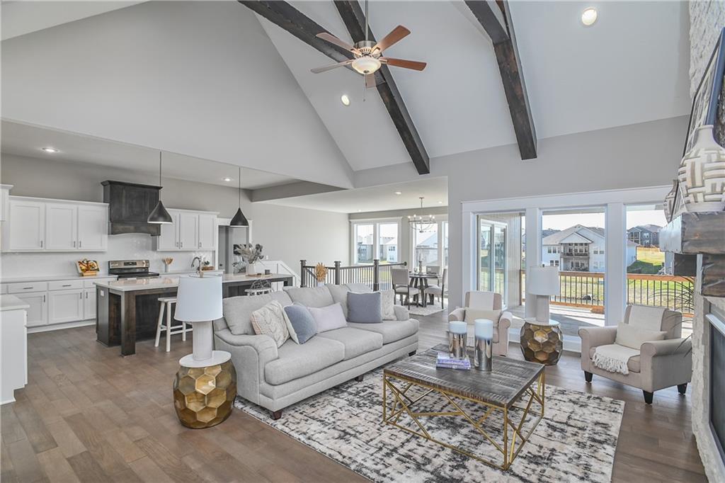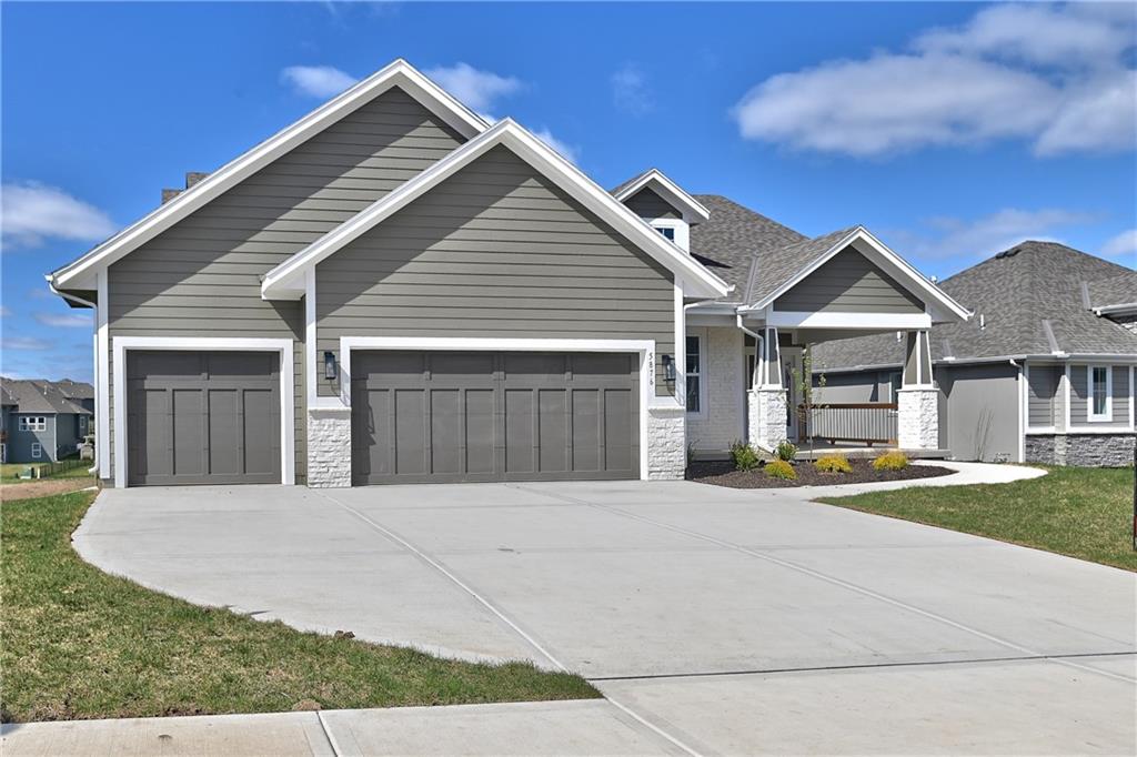 This home is perfectly situated at the end of a quiet cul-de-sac, adjacent to a public golf course. The stunning Reverse 1.5-Story Aspen by Prieb Homes offers a spacious, open floor plan filled with impressive details throughout. Soaring vaulted ceilings with stained beams and striking stonework surrounding the fireplace create a grand first impression upon entry. The kitchen is designed for both entertaining and everyday living, featuring a massive granite center island and ample workspace. The primary suite serves as a relaxing retreat, complete with an adjacent bonus office space and a conveniently located laundry room with built-in cabinetry. The spa-like primary bath includes a custom shower and separate vanities. The finished lower level expands the living space with a wet bar, two additional bedrooms, and a full bathroom—perfect for guests or recreation. Step outside to the large covered 14x12 deck and enjoy peaceful views. Room sizes and taxes are estimated, and some features may not be available in this spec home. Buyer’s agent to verify all information. Some Pictures are of completed plan, decor selections and front elevation orientation to vary.