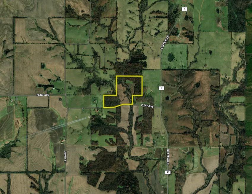 The Jameson area is experiencing strong demand for both rural home sites and quality hunting land, and this farm is well suited for either—or both. Whether you’re looking to build, hunt, or simply enjoy the outdoors, this property checks all the right boxes. The farm is exceptionally well laid out for hunting, offering a diverse mix of habitats and benefiting from its position among several large blocks of neighboring cover. The wooded portions of the property feature mixed hardwoods with varying slopes, creating ideal deer bedding opportunities for nearly any wind direction. In the heart of the farm, several open fields are complemented by Mason Creek as it winds through the property, providing a reliable water source and stealth access for hunters. These open fields have been managed for wildlife habitat and include warm-season grasses along with both annual and perennial food plots. Despite its size, this tract truly packs a big punch—offering food, water, bedding cover, and natural travel funnels. The layout creates a hub that ties into surrounding habitat, making it a standout property for whitetail hunting. While the seller doesn't normally run trail cameras, he had a friend place some for a few weeks in September of 2025. In that short period of time there were several up-and-comers and a couple of very nice bucks-the tip of the iceberg for what this farm can produce. With the strong deer population in the area and the impressive setup of this farm, this property is a true gem for hunters. Beyond its recreational appeal, the area continues to grow, making this property an excellent option for a future home or country cabin. The rolling hills along the west side of the farm offer potential building sites with scenic views overlooking the creek bottom below. Located approximately a quarter mile west of K Highway, the property provides the peaceful seclusion of a quiet country gravel road while still offering the convenience of quick access to the blacktop.