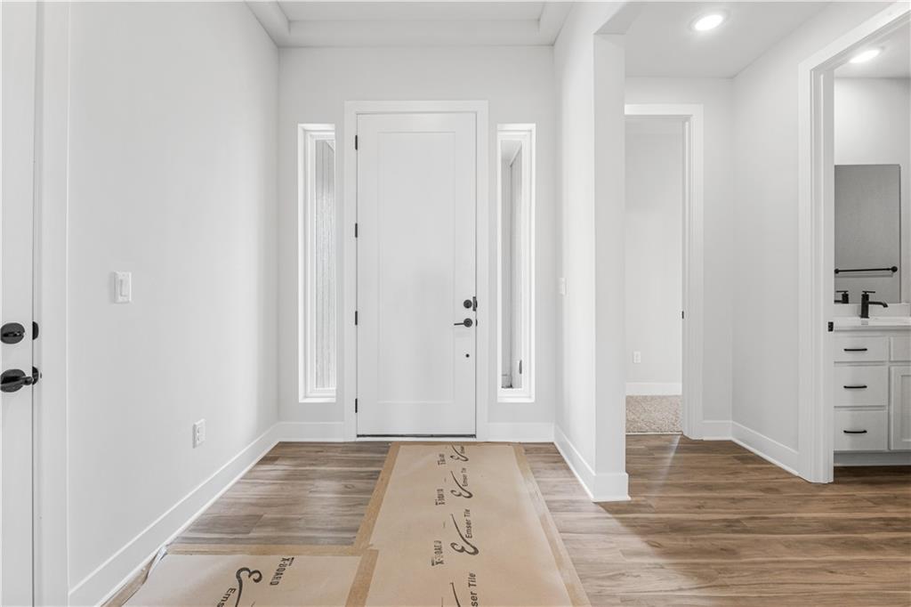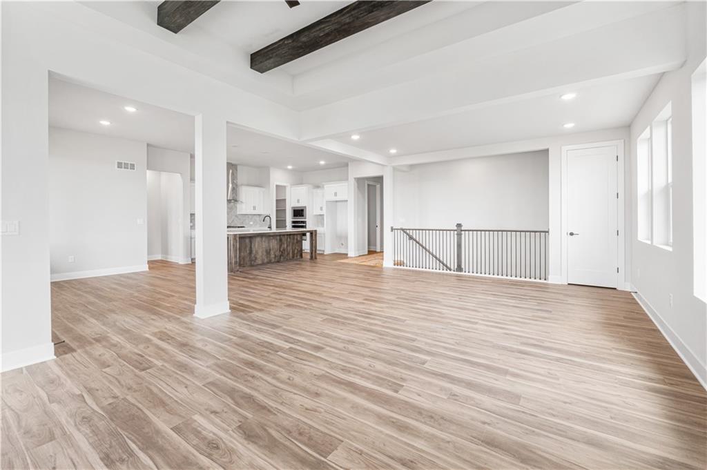 The Hunt by Hakes Brothers is the ultimate home with a grand, luxurious feel! Enjoy the spacious main level featuring 3 bedrooms, 2.5 bathrooms, and a laundry room connected to the primary suite. The chef’s kitchen boasts an oversized island, perfect for entertaining or culinary adventures, with built-in appliances including gas cooktop, oven, microwave, and real wood cabinets. The home features 8 ft doors on the main level and a spacious living room with wood beams serving as a stunning focal point. Quartz countertops throughout elevate the design, and the primary suite includes a spa like bathroom with a fully tiled, zero entry shower. The unfinished daylight basement is waiting for your design touch, with plumbing included for a future bathroom and wet bar create your ultimate hangout or entertainment space exactly how you’ve dreamed. This is a home you won’t want to miss! Located in the desirable Grayhawk at Prairie Gardens community, residents enjoy a pool, playground, green space. Just minutes from The Legends shopping, dining, and entertainment, with quick access to K7 and major highways, and approximately 30 minutes to Kansas City International Airport. Top rated schools, nearby retail, and a vibrant community make this home a must see. Photos are of a similar model and may not reflect all finishes, upgrades, or features of this specific home. Home estimated completion March 2026