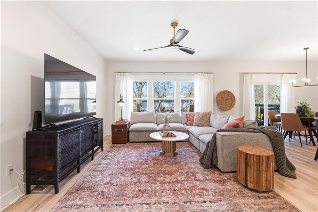 Better than new construction — this stunning 3-year-old townhome offers all the benefits of new build without the wait. A dramatic two-story entry welcomes you with designer iron spindle staircase and curated light fixtures. The open main floor flows seamlessly from the chef's kitchen to dining and living, perfect for entertaining. The kitchen features a large island, walk-in pantry, stainless steel appliances, designer backsplash, and updated hardware. Commercial-grade luxury vinyl plank flooring, matte black hardware, and granite countertops throughout give this home a cohesive, high-end feel. The primary suite is a true retreat with floor-to-ceiling tiled shower, double vanities, under-mount sinks, and an oversized walk-in closet connected directly to the laundry room. The large unfinished basement offers endless storage and is ready for your future vision. Outside, enjoy a brand new deck, a spacious treed backyard, and a park with playground and picnic area right across the street. Easy access to I-35 and I-635 makes for a smooth commute anywhere in the metro.
