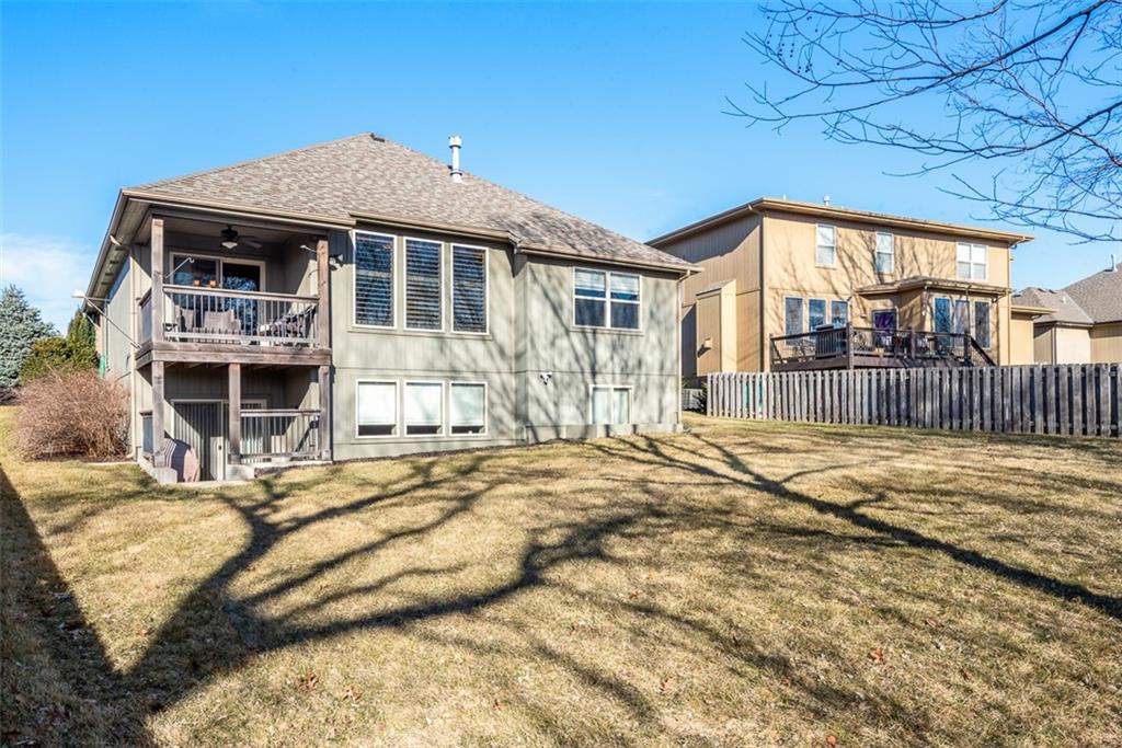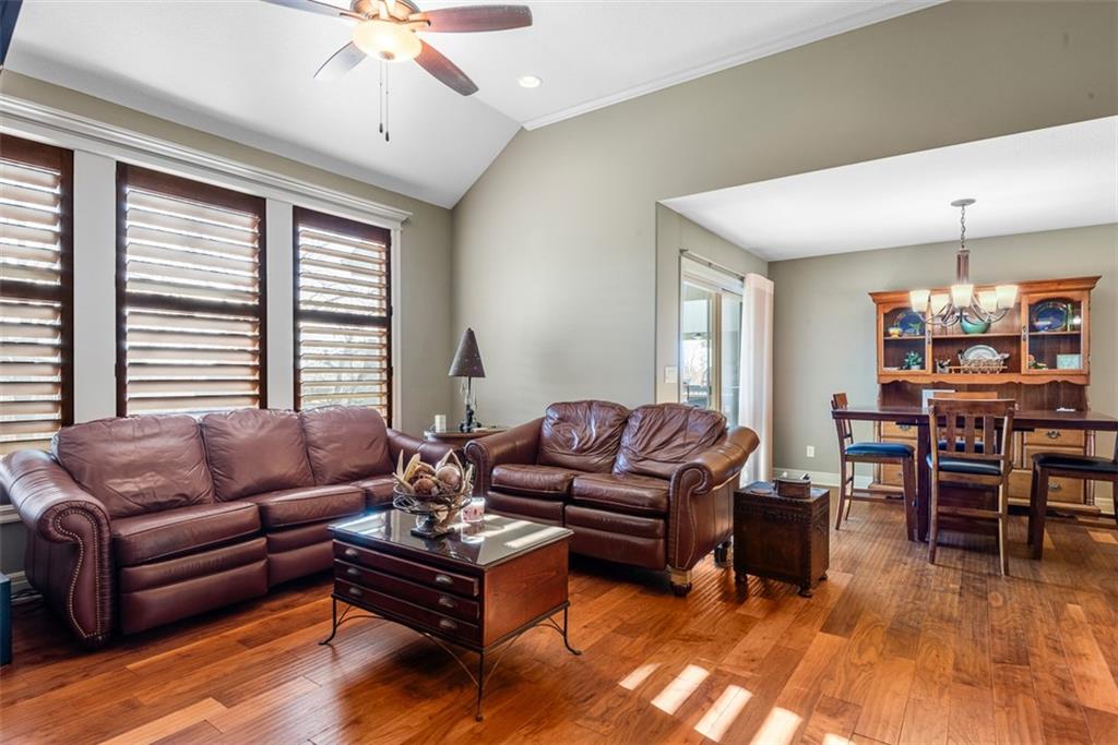 Don't miss out on this home in The Greens at Prairie Highlands - located in one of the area’s most sought-after golf course communities, just minutes west of Lake Olathe. This former model home is filled with thoughtful upgrades and timeless style. The popular reverse ranch floor plan offers an open-concept layout connecting the living room, kitchen, and dining area, perfect for everyday living and entertaining. The kitchen features a center island, pantry, pull-out drawers, and abundant cabinetry, while the stone fireplace and accent wall create a warm, inviting focal point in the living space. The spacious primary suite includes a spa-like bathroom with dual vanities and a soaking tub, conveniently connected to the laundry room. 2nd bedroom/office is also located on the main floor. Start your mornings on the covered deck overlooking peaceful green space and visiting wildlife. The finished lower level family room is ideal for entertaining. Additional features includes two bedrooms, full bath, plenty of storage and walkout/walkup access to the backyard. A three-car garage, in-ground auto drain sprinkler system, and close proximity to the community pool bring comfort and ease to everyday living. Residents enjoy access to the community pool, neighborhood activities, and Crush Restaurant at the Prairie Highlands Golf Course Clubhouse - open to the public. Golf course play requires membership. A single-owner home, thoughtfully maintained and ready to be enjoyed by its next owner.