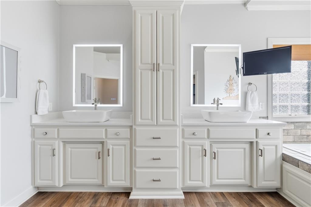 Absolutely STUNNING estate home on 2.56 acres with a reverse 1.5-story floorplan, offering 5 bedrooms & 4.5 baths in an impressive all-brick home with a concrete roof—built for timeless beauty and lasting quality. This home has been extensively updated throughout with fresh interior paint, new fixtures, and flooring. The beautifully updated kitchen is the heart of the home, featuring new countertops, painted cabinetry, updated appliances, and a stylish backsplash. You’ll love the two oversized pantries, offering incredible storage and functionality. The main level also includes a private office with extensive built-in cabinetry, along with a formal living room & formal dining room—perfect for entertaining. The primary suite is a true retreat with an updated spa-like bathroom, including heated mirrors, towel rack & a gorgeous walk-in shower. Even better — the second main-level bedroom features its own private en suite bathroom, making it perfect for guests, in-laws, or a second primary-style suite. You’ll also love the oversized laundry room, offering plenty of space for storage, folding, & everyday functionality. Downstairs, the finished lower level is an entertainer’s dream with a fully updated bar featuring new countertops, cabinetry, fresh paint, & updated lighting, plus three beverage refrigerators & a wine refrigerator. A separate game room includes lots of space for a pool table, ping-pong table, shuffleboard table, and additional bar space—ideal for hosting family and friends. Step outside and enjoy your own private backyard oasis with new landscaping, a saltwater-converted pool, and an incredible outdoor living setup. The property also features an additional outbuilding for pool storage and lawn equipment, plus a new outdoor kitchen designed for summer entertaining. Relax by the fire pit or unwind in the peaceful sitting area under the deck, surrounded by unmatched privacy. This one truly has it all—space, luxury, updates, and outdoor living at its finest.