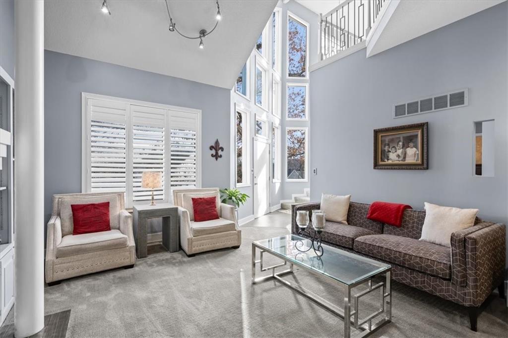 Absolutely captivating modern, one-of-a-kind home located in Lee's Summit hidden gem subdivision, Arbores. This quiet enclave of just 113 homes boasts HOA fees a small fraction of nearby popular neighborhoods. Fall in love with the stunning front elevation's contemporary lines and myriad of windows. Walk inside to a light-filled open space featuring a winding staircase and soaring ceilings. On the main level, you will find a gorgeous living room with built-ins and fireplace. The large kitchen is thoughtfully and creatively designed with a large island, gas cooktop, double ovens and an abundance of cabinets. Enjoy the primary bedroom on the main level with a spacious en suite bath with custom California closet, shower and jetted tub. Main level laundry and attractive half bath on first floor. The impressive staircase leads to another gathering place designed for fun and entertaining, plenty of space to play games, relax and watch your favorite team. Two bedrooms on second level, one with a full bath and walk in closet, there's a second full bath in hallway. There are two entrances to large basement, one in hallway and one in garage. Basement is stubbed for bath and can be finished to your taste. Massive 3 car climate controlled garage and driveway with all the space you can ever need. Spring is around the corner, watch the landscaping and outdoor spaces come to life, irrigation system makes caring for the gorgeous perennials a breeze! Two private stocked lakes and walking trails, access just across street. Close to wonderful amenities, state park, wildlife, highway access and more!