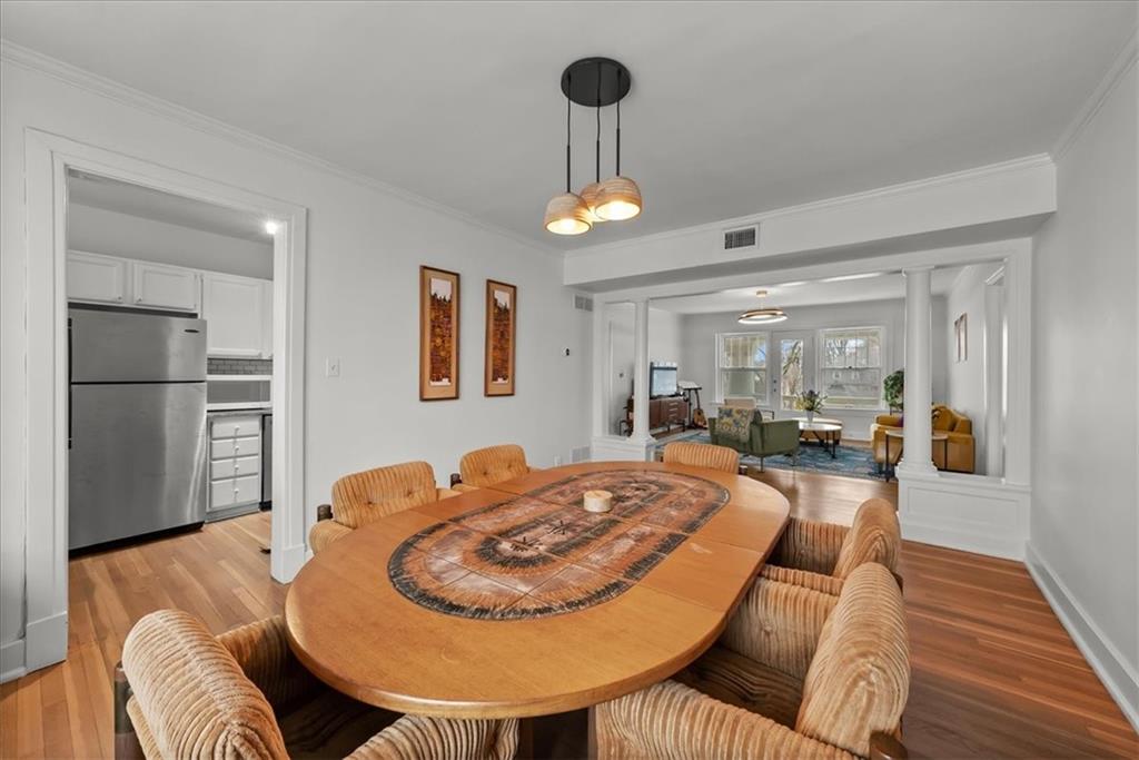 Welcome home to timeless charm at Vanderbilt Place, a beautifully maintained residence in the heart of Southmoreland. Perched on the top floor, this classic colonnade-style building showcases the elegance of 1925 architecture paired effortlessly with modern-day updates — the perfect blend of character and convenience. Inside, this airy two-bedroom, one-bath condo is filled with natural light and features rich hardwood floors, crisp white walls, and thoughtful upgrades throughout. Original details nod to the home’s historic roots, while contemporary fixtures add a fresh, charm-worthy touch. The kitchen shines with stainless steel appliances, granite countertops, and clean white cabinetry — a bright and functional space ready for everything from morning coffee to dinner with friends. The bathroom offers timeless tile flooring and a shower-over-tub combination, creating a polished, spa-like feel. A private in-unit laundry adds everyday ease, and a tucked-away bonus space at the rear of the unit makes the perfect home office, hobby room, or cozy creative retreat. Step out onto the covered front porch and take in views of the surrounding neighborhood — an ideal spot to unwind. Additional perks include basement storage, a detached single-car garage within a gated area, plus ample street parking. Located just blocks from the KC Streetcar, Nelson-Atkins Museum of Art, Kemper Museum, local restaurants, The Country Club Plaza, and Historic Westport. This well-cared-for building offers convenient, connected living in one of Kansas City’s most charming historic neighborhoods. Classic architecture. Light-filled living. Effortless style. Don’t miss your opportunity to call this Southmoreland gem home.