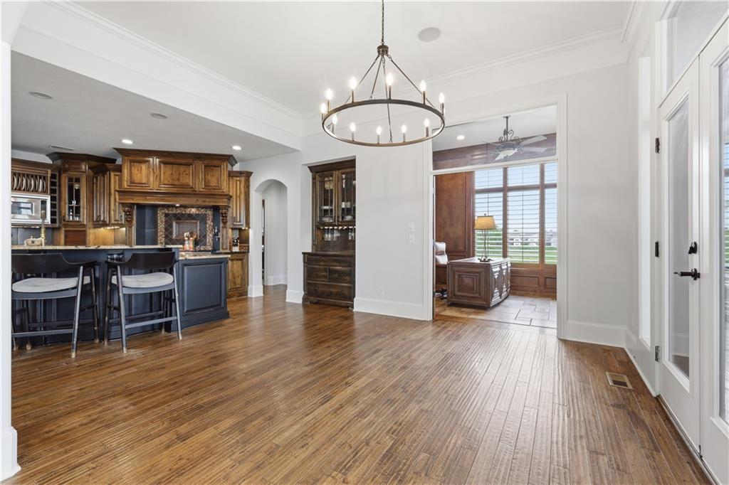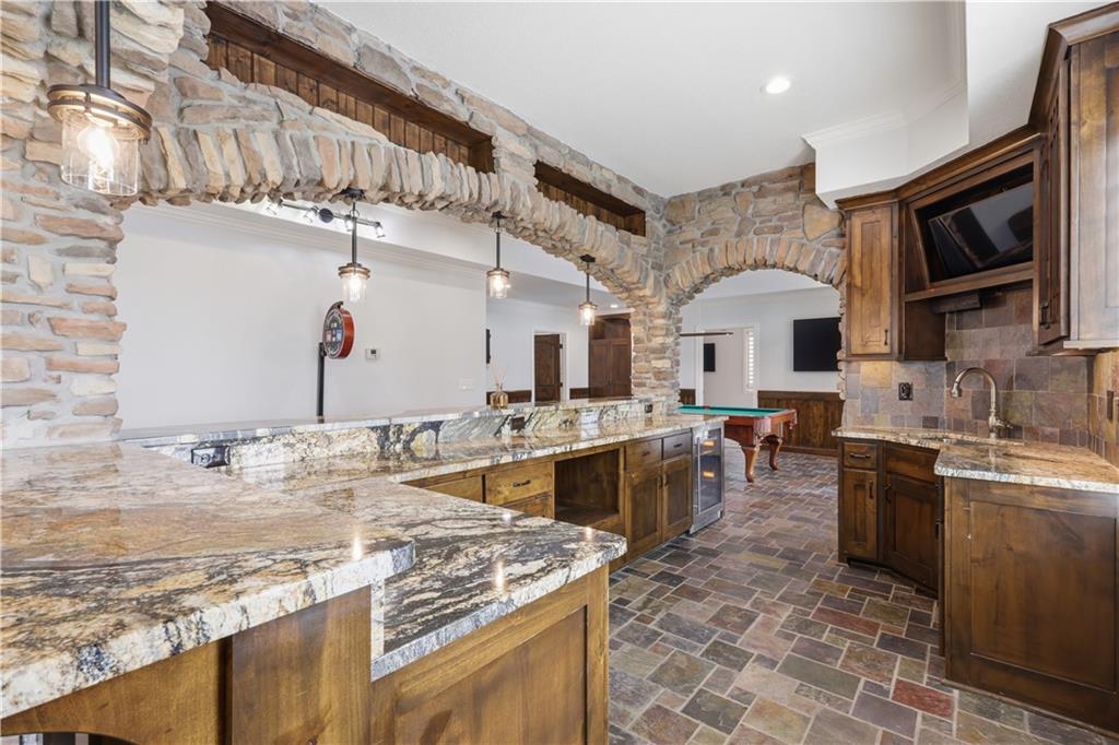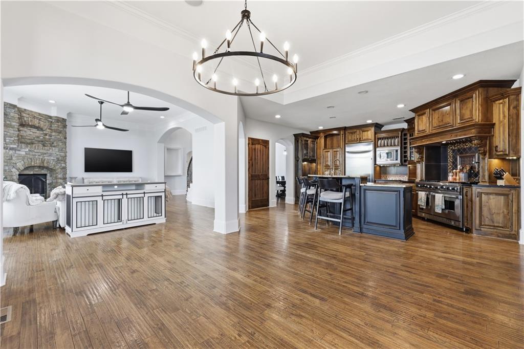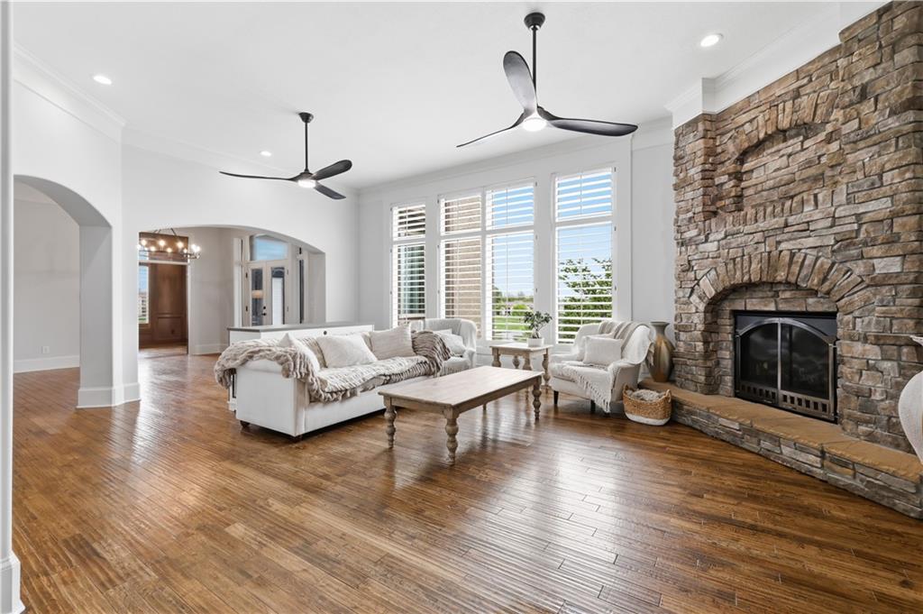 Located on a .5+ acre, cul-de-sac lot, this Staley Farms beauty offers golf course frontage on both the 2nd & 5th holes w/AMAZING views! PARTIAL NEW ROOF AS OF SPRING, 2026! The open main level features a formal Dining Rm & spacious Living Rm, designed for both everyday life & entertaining! Features include updated lighting & paint & a fireplace equipped w/an electric fan that provides heat to the Primary BR! The Chef’s Kitchen includes a 6 burner, gas Viking range w/pot filler, stainless steel appliances (ALL STAY!) & abundant upgraded features! The private Office has custom built-ins & plantation shutters (as are featured thru-out the entire home)! Hunker down in the “All-Seasons” room, offering add’l space to enjoy year-round views! The Primary BR offers more amazing golf views & is adjacent to the FAB Primary BA. This peaceful space offers a soaker tub, spa-like steam shower & walk-in closet w/three-tier rod system & extensive shelving. Upstairs, the spacious Loft is perfect for an office, play or TV area. 2 large bedrooms have walk-in closets & private Baths! The finished, walk-out Basement has TONS of add’l space! Stay cozy by the gorgeous fireplace! Enjoy a beverage at the large wet bar (with seating for at least 6!). Another room currently used as a gym could also be a Media Rm. Additionally, there is another Primary Suite (complete w/walk-in closet & full BA), a 100+ bottle wine cellar, HUGE Storage Rm & workshop! Items remaining on this level include the pool table, shuffleboard table, deep freezer & refrigerator! The outdoor oasis features include a heated, saltwater pool w/automatic cover, wrought iron fencing, putting green w/sand trap, updated landscaping & a playset (which STAYS!). Neighborhood amenities include a full-service restaurant & bar, swimming pool, tennis & pickleball courts, indoor basketball & fitness center. They don’t make them like this anymore ~ take advantage of this rare opportunity & make this dream home YOURS!
