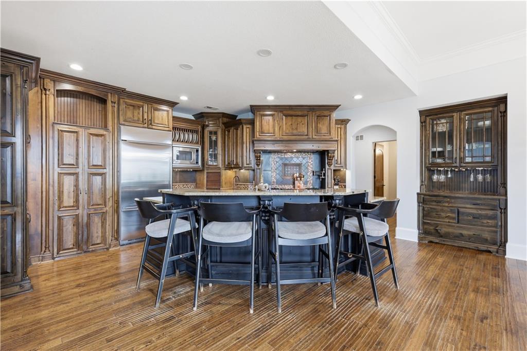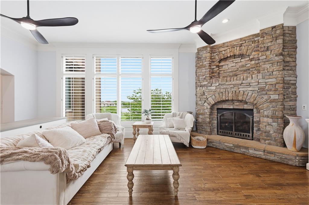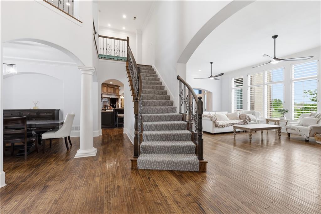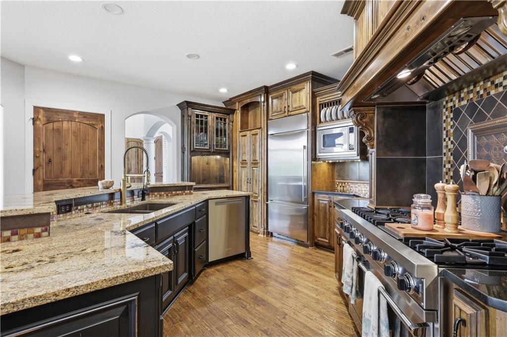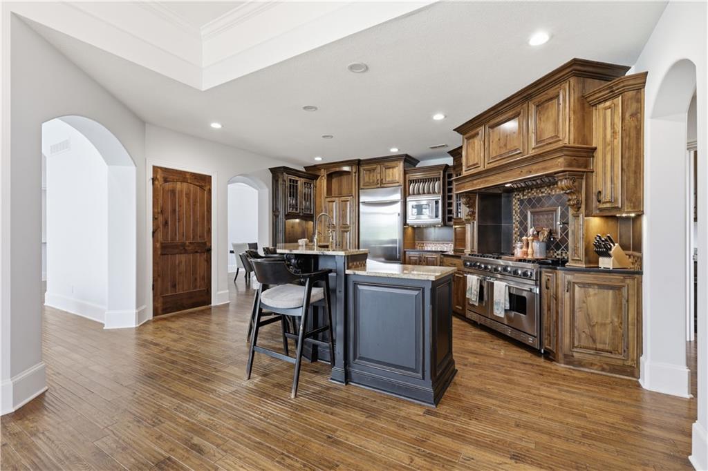Located on a .5+ acre, cul-de-sac lot, this Staley Farms beauty offers golf course frontage on both the 2nd & 5th holes w/AMAZING views! PARTIAL NEW ROOF AS OF SPRING, 2026! The open main level features a formal Dining Rm & spacious Living Rm, designed for both everyday life & entertaining! Features include updated lighting & paint & a fireplace equipped w/an electric fan that provides heat to the Primary BR! The Chef’s Kitchen includes a 6 burner, gas Viking range w/pot filler, stainless steel appliances (ALL STAY!) & abundant upgraded features! The private Office has custom built-ins & plantation shutters (as are featured thru-out the entire home)! Hunker down in the “All-Seasons” room, offering add’l space to enjoy year-round views! The Primary BR offers more amazing golf views & is adjacent to the FAB Primary BA. This peaceful space offers a soaker tub, spa-like steam shower & walk-in closet w/three-tier rod system & extensive shelving. Upstairs, the spacious Loft is perfect for an office, play or TV area. 2 large bedrooms have walk-in closets & private Baths! The finished, walk-out Basement has TONS of add’l space! Stay cozy by the gorgeous fireplace! Enjoy a beverage at the large wet bar (with seating for at least 6!). Another room currently used as a gym could also be a Media Rm. Additionally, there is another Primary Suite (complete w/walk-in closet & full BA), a 100+ bottle wine cellar, HUGE Storage Rm & workshop! Items remaining on this level include the pool table, shuffleboard table, deep freezer & refrigerator! The outdoor oasis features include a heated, saltwater pool w/automatic cover, wrought iron fencing, putting green w/sand trap, updated landscaping & a playset (which STAYS!). Neighborhood amenities include a full-service restaurant & bar, swimming pool, tennis & pickleball courts, indoor basketball & fitness center. They don’t make them like this anymore ~ take advantage of this rare opportunity & make this dream home YOURS!