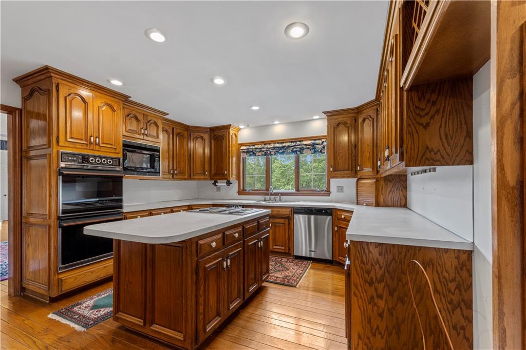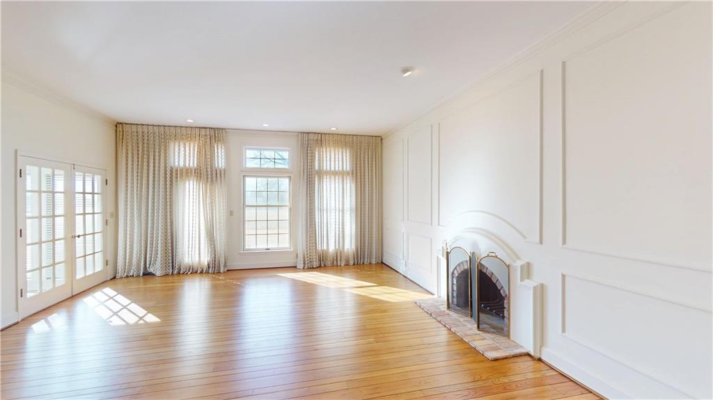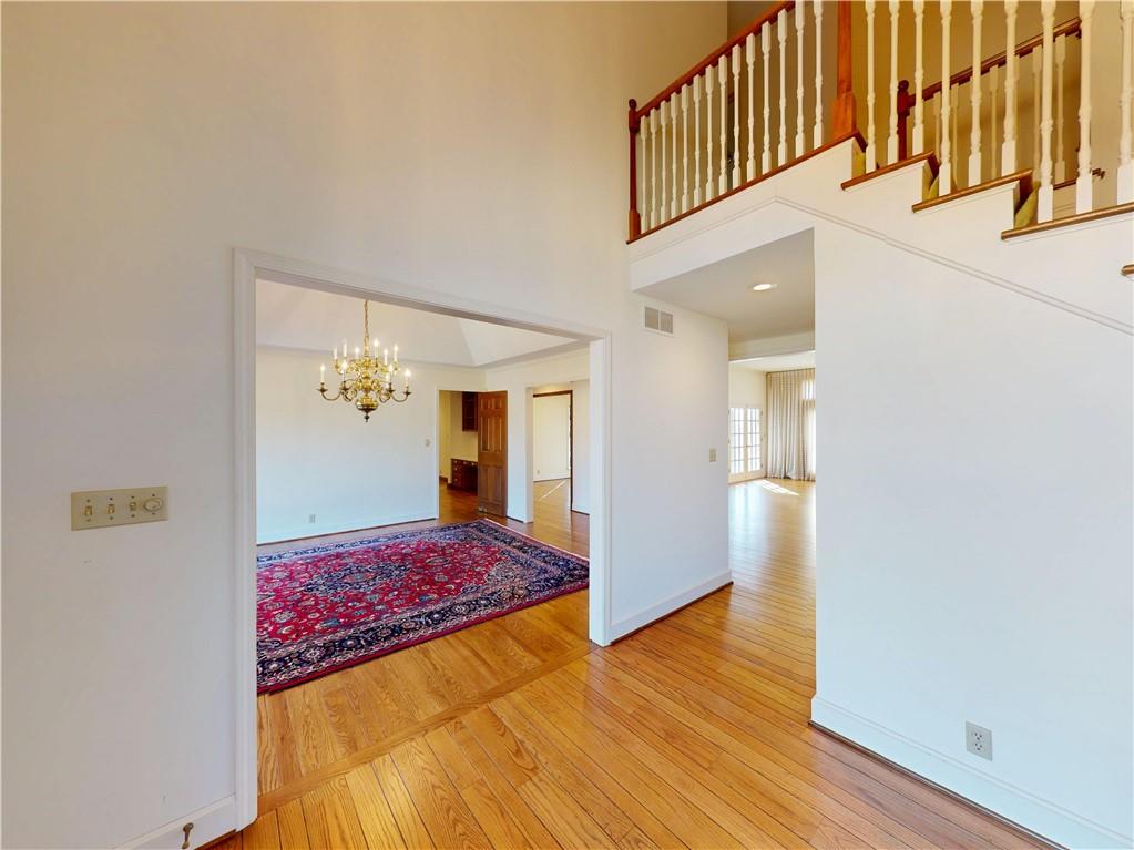Take advantage of the rare opportunity to own a stately, full brick home perfectly positioned on 2.3 sprawling acres (m/l) just outside the city limits of Nevada, MO. The grand arched glass entryway opens into a light-filled foyer, offering a stunning view of the winding staircase that sets the tone for the home's architectural character. The main level has been elevated with brand-new wide-plank wood flooring, custom-milled in South Carolina, flowing from the entry and encompassing the formal dining room, kitchen, breakfast nook, walk-in pantry, and hallway. Host gatherings in the formal dining room under a tray ceiling and elegant chandelier, with a bay window framing the lush front lawn. The living room is a breathtaking sanctuary of comfort and style. Soaring high ceilings are accented by crown molding and wainscoting, creating an atmosphere of timeless sophistication. At the heart of the room sits a cozy fireplace, while a wall of windows bathes the space in natural light and offers serene views of the sunroom and the classic brick patio beyond. The library is a true retreat featuring a coffered ceiling, custom built-in shelving, a second fireplace, and a wet bar with glass shelving—the ultimate setting for a home office or quiet evening. Enjoy slow mornings under the beamed ceilings in the breakfast area, or step into the sunroom with classic brick flooring, accessible from both the living and breakfast areas. The primary suite, located on the main-level offers walk-in closets and a spacious en-suite bath with with double vanities, a garden tub, and separate shower. Designed for convenience, the main-level also includes two half-baths, a laundry room, and a walk-in pantry providing ample storage and effortless functionality. The upper level provides two additional bedrooms and bathrooms. While the full, unfinished basement includes a third fireplace, providing a versatile space where the possibilities are endless.
