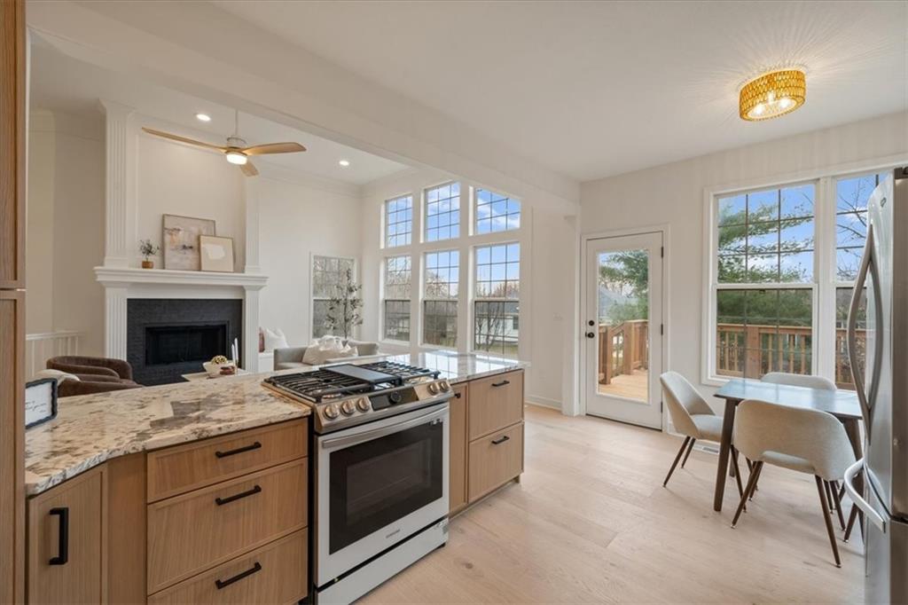 Welcome to Heatherwood—one of the most sought-after maintenance-provided villa communities in South Overland Park! This stand-alone villa offers true low-maintenance living with reasonable HOA dues that cover trash, recycling, snow removal, and even exterior house painting. Better than new, this home has been fully remodeled from top to bottom with all major mechanicals already addressed. Recent upgrades include a new limited-lifetime architectural shingle roof, new furnace, and new A/C with coil. The stunning kitchen features high-end cabinetry with soft-close drawers and doors, a deep pantry, granite countertops and splash, a premium range with air-fry and Wi-Fi capabilities, complete with a new Bosch dishwasher. All bathrooms have been beautifully updated with contemporary tile and modern finishes. The spacious primary suite boasts dual vanities, a lighted mirror, a separate toilet room, a large walk-in closet, and an oversized walk-in shower that may just be the largest in the neighborhood. New engineered hardwood flooring flows throughout the main level, creating a cohesive and upscale feel. The finished basement adds two additional bedrooms and generous recreation space—perfect for guests, hobbies, or entertaining. Step outside to enjoy the brand-new oversized deck overlooking the backyard. The majority of windows have already been replaced, with the remaining scheduled for installation soon. This is a rare opportunity to own a truly turnkey villa in an exceptional South Overland Park location—modern updates, major expenses already handled, and maintenance-free living all in one.