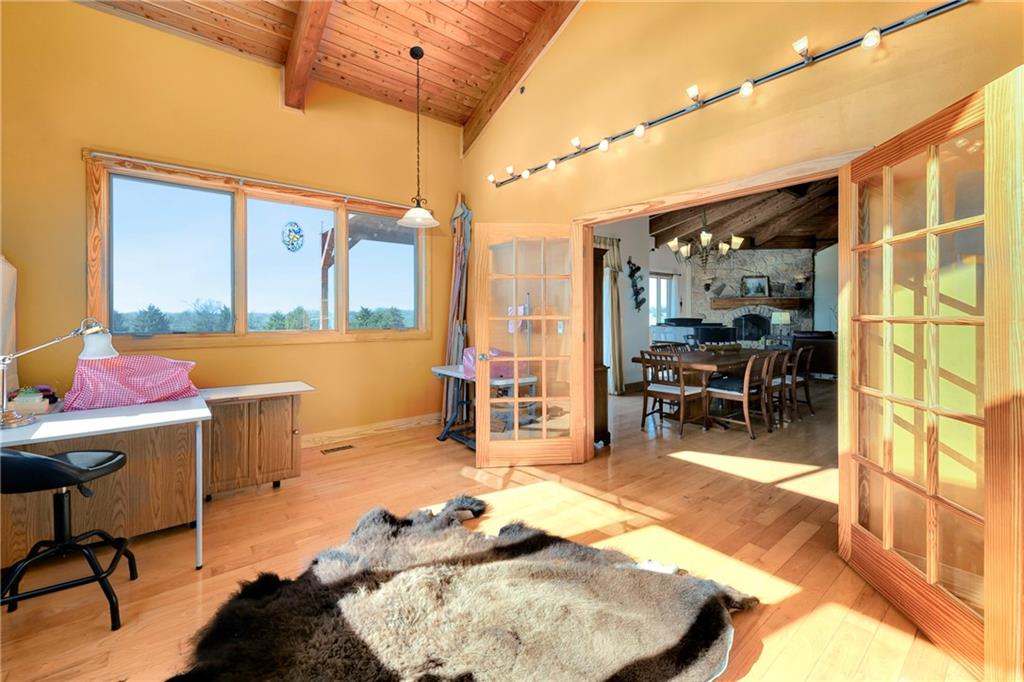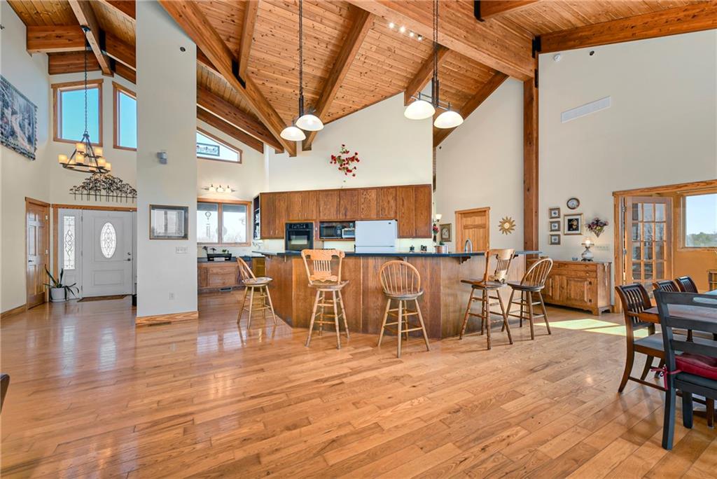 Incredible opportunity to escape the city and own a truly private paradise! Stonehaven Bison Ranch offers a rare blend of luxury, land, and limitless potential! Set on 131 breathtaking rolling acres, the property features a nearly 6000 SF custom brick home with soaring ceilings, incredible sweeping views, a huge outbuilding with concrete floors, and exceptional infrastructure for ranching, recreation, or future business ventures. Currently an operating ranch, the possibilities are endless: private estate, working farm, wedding or event venue, winery, or potential development opportunity. Complete with 3 ponds, 60 acres of hay ground, 60 acres of pasture, 10 wooded acres, chicken house and raised garden beds, there is something here to please everyone in the family. Deer, turkey and doves are plentiful and the hunting is excellent. This luxurious home is centered around a dramatic great room with walls of windows and a striking 2-story fireplace with custom mantle. The gourmet kitchen is a showstopper, offering a butlers' pantry, walk-in pantry, center island, baking area, abundant cabinets and a generous vaulted dining space. The luxurious primary suite features a fireplace, whirlpool tub, and dual-head shower. The main level also includes a majestic library with rolling ladder, laundry room, and a second bedroom off the kitchen. The walkout lower level is accessible from two staircases (one with chairlift) and includes 3 bedrooms, 2 baths, a spacious family room with fireplace, a gaming area and large bar. Indoor and outdoor entertaining options abound with composite deck with arbor which offers unmatched views. Highlights include geothermal heating & cooling, fire sprinklers, heated 3-car garage, cedar-lined drawers, custom cabinets and solid surface countertops throughout, and fresh carpet and paint! If you have been dreaming of a refined rural lifestyle, this one-of-a-kind estate in the heart of Miami County just might be "the one"!