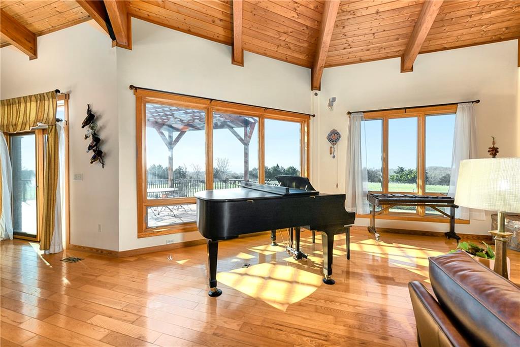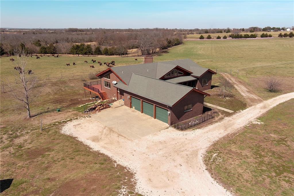 Incredible opportunity to escape the city and own a truly private paradise! Stonehaven Bison Ranch offers a rare blend of luxury, land, and limitless potential! Set on 131 breathtaking rolling acres, the property features a nearly 6000 SF custom brick home with soaring ceilings, incredible sweeping views, a huge outbuilding with concrete floors, and exceptional infrastructure for ranching, recreation, or future business ventures. Currently an operating ranch, the possibilities are endless: private estate, working farm, wedding or event venue, winery, or potential development opportunity. Complete with 3 ponds, 60 acres of hay ground, 60 acres of pasture, 10 wooded acres, chicken house and raised garden beds, there is something here to please everyone in the family. Deer, turkey and doves are plentiful and the hunting is excellent. This luxurious home is centered around a dramatic great room with walls of windows and a striking 2-story fireplace with custom mantle. The gourmet kitchen is a showstopper, offering a butlers' pantry, walk-in pantry, center island, baking area, abundant cabinets and a generous vaulted dining space. The luxurious primary suite features a fireplace, whirlpool tub, and dual-head shower. The main level also includes a majestic library with rolling ladder, laundry room, and a second bedroom off the kitchen. The walkout lower level is accessible from two staircases (one with chairlift) and includes 3 bedrooms, 2 baths, a spacious family room with fireplace, a gaming area and large bar. Indoor and outdoor entertaining options abound with composite deck with arbor which offers unmatched views. Highlights include geothermal heating & cooling, fire sprinklers, heated 3-car garage, cedar-lined drawers, custom cabinets and solid surface countertops throughout, and fresh carpet and paint! If you have been dreaming of a refined rural lifestyle, this one-of-a-kind estate in the heart of Miami County just might be "the one"!
