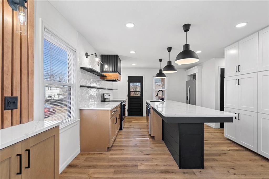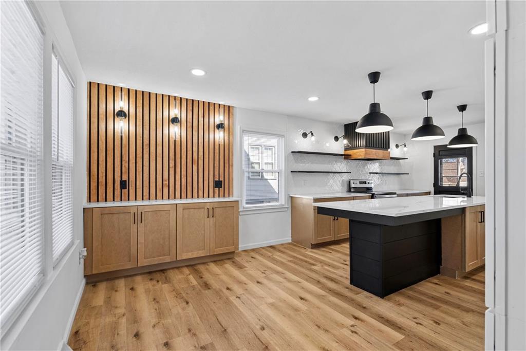 Listed below appraised value, this is an opportunity you do not want to miss. Located just minutes from the Waldo shops, restaurants, and local favorites, this charming home sits in a quiet, established neighborhood full of character. The freshly remodeled eat in kitchen features a stunning 10 foot island with seating, creating the perfect space for gathering, hosting, or everyday living. New flooring runs throughout the home, giving it a fresh and cohesive feel, while oversized rooms provide flexibility and comfort. The layout offers two bedrooms upstairs, including the primary suite with a private bathroom and gorgeous shower, plus an extra large secondary bedroom and convenient hall storage. An additional bedroom on the main floor can easily double as a home office or guest space, with a hall bath located at the top of the stairs for added functionality. Step outside to enjoy a peaceful covered lanai along with a large deck ideal for entertaining. The fenced yard offers room to relax or play, and a storage shed adds extra convenience. With space, updates, and a prime location near everything Waldo has to offer, this home delivers exceptional value and everyday livability.