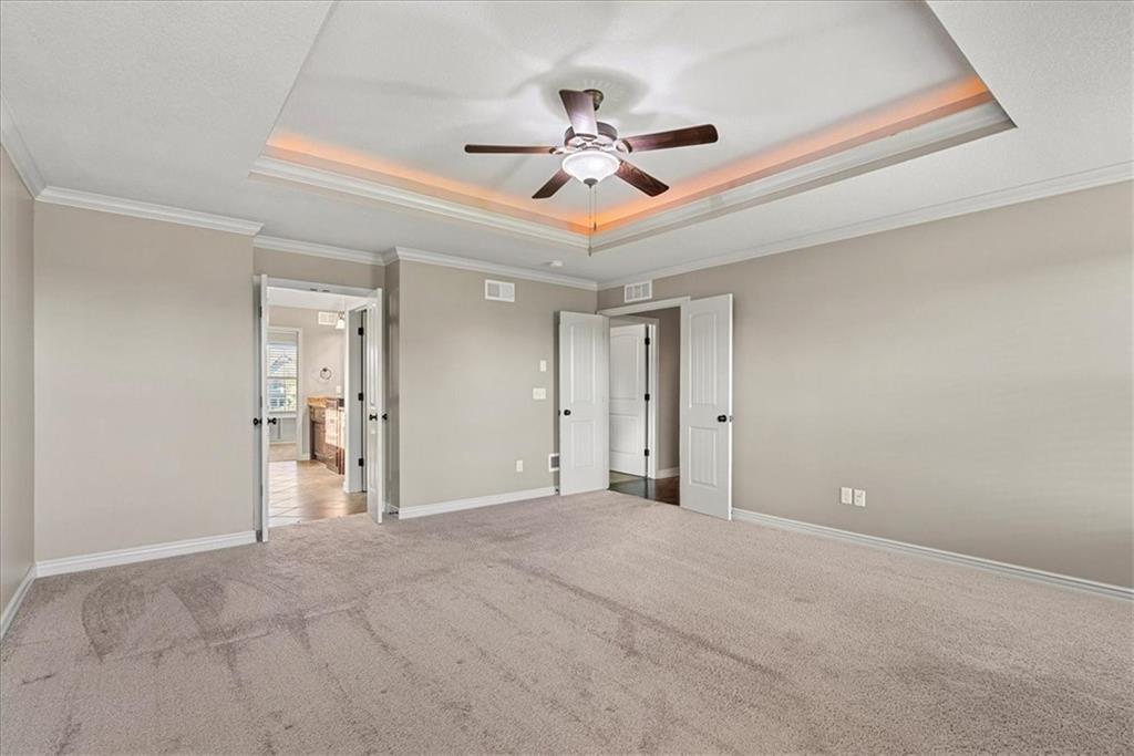 Step inside and feel instantly at home in this thoughtfully designed residence that blends everyday comfort with elevated style. The open, airy layout includes a versatile main-level bedroom or den paired with a full bath—ideal for guests, multigenerational living, or convenient one-level living. The kitchen is truly the heart of the home and made for gathering. You’ll love the alder wood cabinets, custom island, large walk-in pantry, and high-end appliances, including a gas cooktop and convenient island microwave. Whether you’re cooking for a crowd or enjoying a quiet night in, this space delivers. Retreat to a show-stopping primary suite designed to impress, featuring custom cabinetry, a spa-inspired jetted tub, an oversized shower, and an expansive walk-in closet. Secondary bedrooms offer private or direct bath access, giving everyone their own sense of space and comfort. Looking for room to grow? The walkout lower level is insulated, stubbed, and ready for your vision—think additional bedroom and bath, game room, home theater, or the ultimate man cave. An EV charger is already installed, adding modern convenience to this forward-thinking home. Tucked away at the end of a quiet cul-de-sac, the property sits on a beautifully maintained, fenced half-acre lot with endless outdoor potential—including space for a future pool. Enjoy morning coffee or evening gatherings on the covered deck and patio, perfectly set up for entertaining. Beyond the home, the community offers exceptional amenities: a clubhouse, resort-style pool, scenic lake, trails, and sport court. And the location can’t be beat—just minutes from dining, shopping, highway access, top-rated schools, and the popular BluHawk district. Homes with this combination of space, upgrades, privacy, and location don’t come along often. Schedule your private showing and experience it for yourself—you won’t want to miss this one.