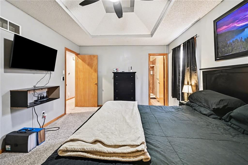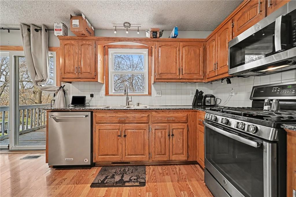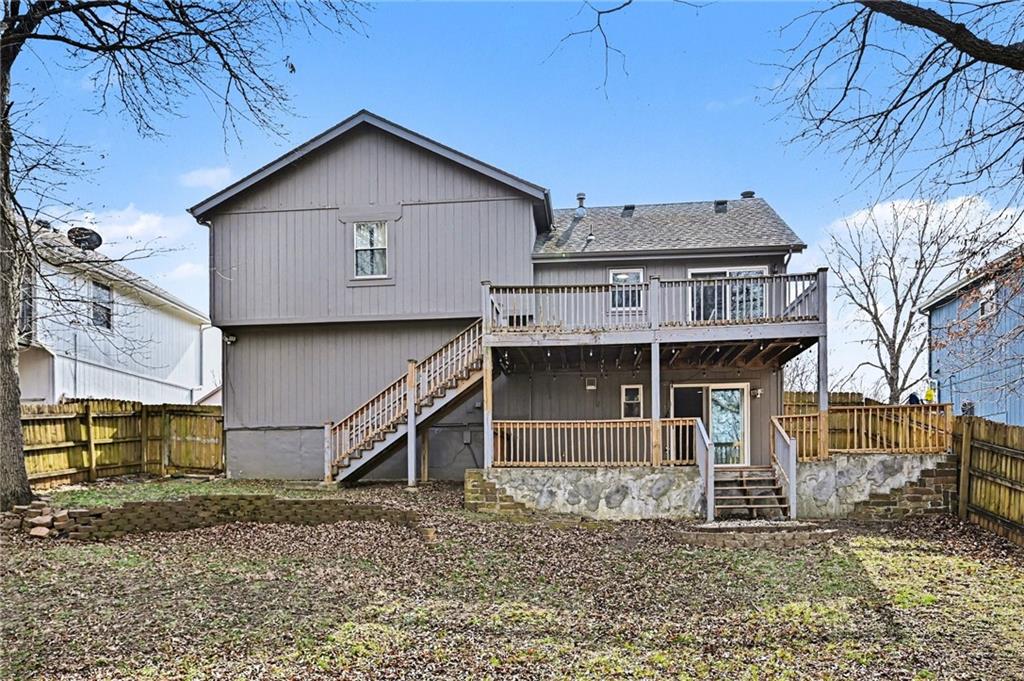 This home in the desirable Park Hill School District offers a prime location near major highways for quick and easy commuting. Ready to be made yours, it welcomes you with vaulted ceilings and a spacious living room featuring a charming vintage style fireplace. The kitchen showcases custom cabinetry that extends into the dining area for extra storage, along with stainless steel appliances and original wood floors. Upstairs, the primary suite includes vaulted ceilings, a large walk in closet, and a private full bath, while two additional bedrooms and another full bathroom complete the level. Just off the main floor, you will find access to the garage and laundry room. The basement offers a large recreation space, utility area, and an additional bathroom, giving you plenty of room to spread out and enjoy. Outside, you will find a two tier deck overlooking a large fenced backyard, perfect for entertaining or relaxing.