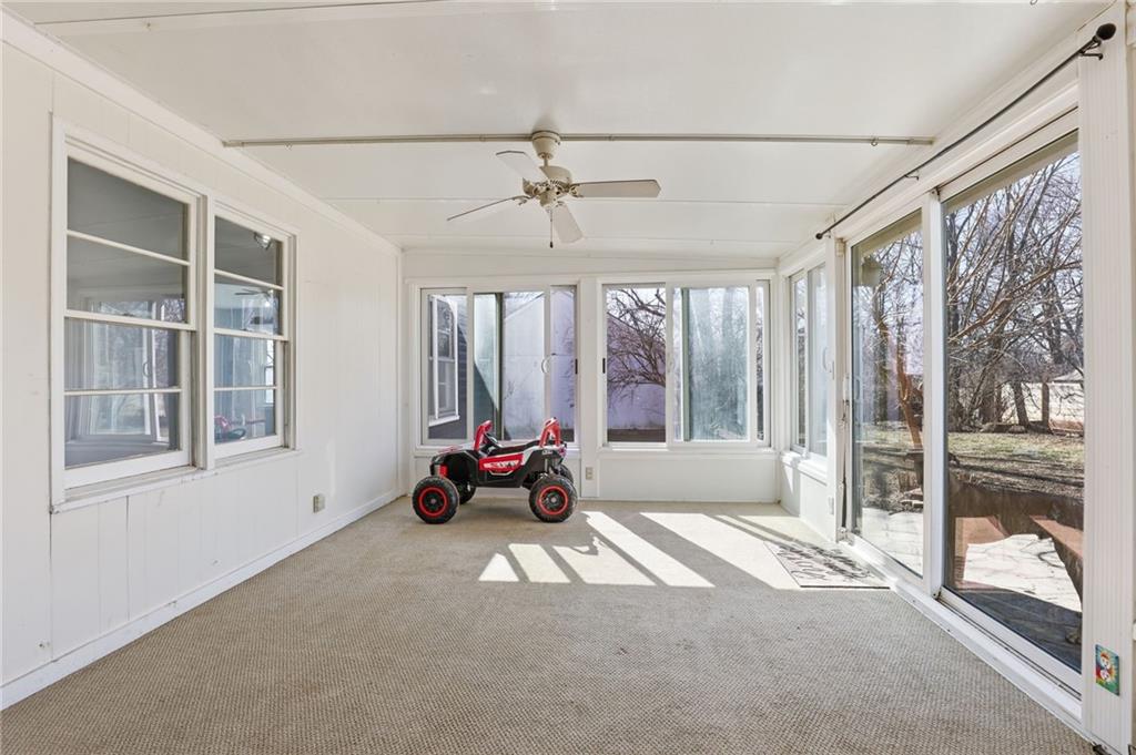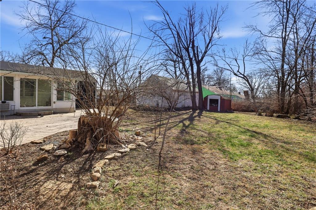 Spacious ranch-style home offering more room than meets the eye in a desirable Kansas City location. Newer roof, furnace and water heater! Thoughtfully designed living areas provide flexibility for everyday living, entertaining, or working from home. Situated on a large corner lot with mature trees, the property offers strong curb appeal and outdoor space to enjoy. The outdoor space creates an ideal setting for cookouts, gatherings, or relaxing evenings outdoors. An attached single-car garage and extended driveway provide convenient off-street parking and a second 2-car garage in the backyard, perfect for those hobbies that require more space! Easily add a gate to the fence for extra parking in that garage. Inside, multiple living areas allow for both connection and privacy. The sunroom adds year-round versatility and can serve as a home office, reading area, hobby space, or additional lounge. An upstairs non-conforming room provides added flexibility for guests, workspace, or creative use. The unfinished basement offers expansion potential for additional living, recreation, or storage space. The home is equipped with solar panels designed to enhance overall energy efficiency and provide long-term utility savings potential.