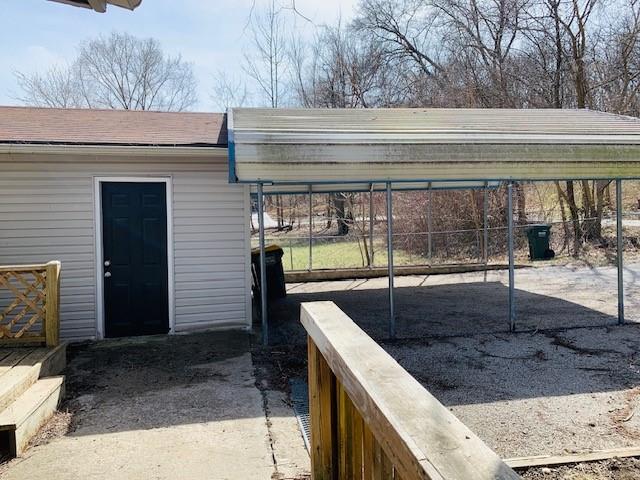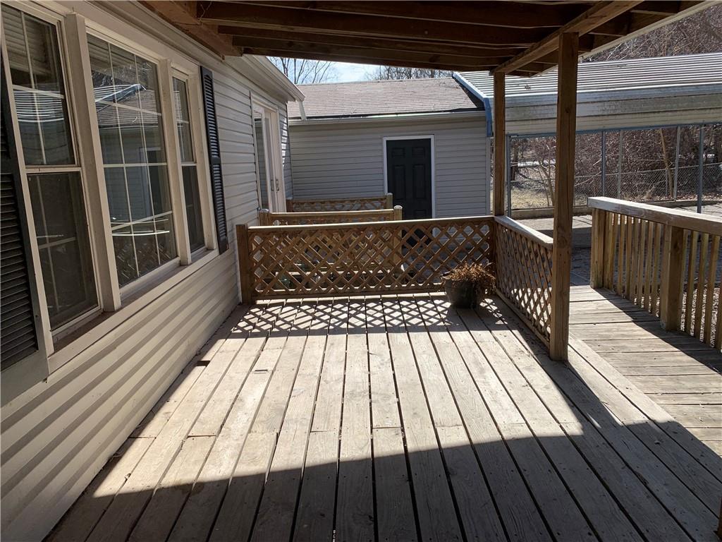 Welcome to your peaceful, move-in-ready retreat! This stunningly renovated ranch offers the perfect blend of modern updates and a serene "country feel." Step inside to find an open, light-filled floor plan featuring beautiful, durable flooring—no carpet anywhere! The spacious family room boasts massive windows that flood the home with natural light, leading into a charming eat-in kitchen and dining area. The thoughtful layout places the Primary Suite at its own private end of the home, complete with direct access to the back deck. Need flexibility? The third bedroom is perfectly sized for a home office or a dream walk-in closet. Outdoor living is where this home truly shines: Front Porch: A beautiful covered space to watch deer and birds in the wooded views across the street. Backyard: is fenced and features a workshop space—ideal for hobbies, storage, or a studio. Parking & Storage: An oversized double driveway, carport, and a massive detached garage with a convenient side entry door for easy access. Located just minutes from parks, schools, shopping, and highway access, you get the quiet of the country with city convenience. Don’t miss out—schedule your tour today!