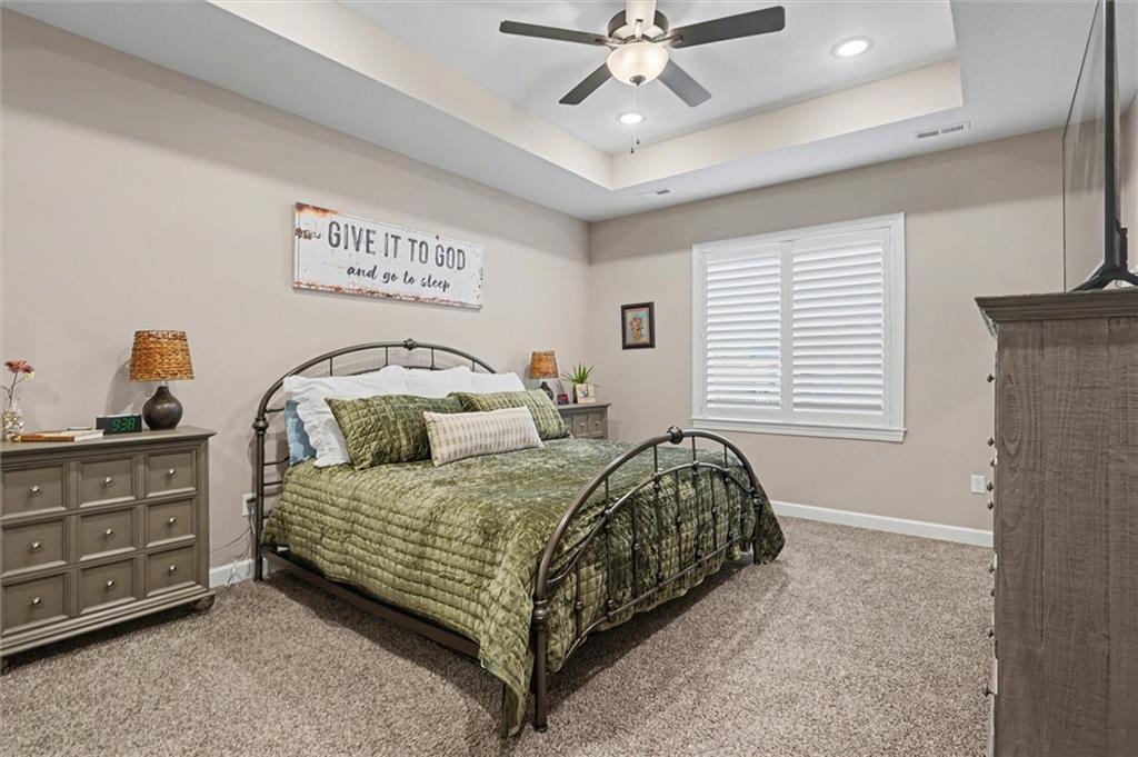 This home still feels new with all the upgrades in popular Hutton Farms. Plantation shutters, gas range, covered patio on the back with rocking chairs greeting you on the front. Drippe Construction created this open concept floor plan with high vaulted ceiling and cross beams. Master closet flows through to the laundry room. Gated community with HOA that covers snow removal of streets, lawn care and sprinkler system. Homeowner responsible for grass inside of the fence.