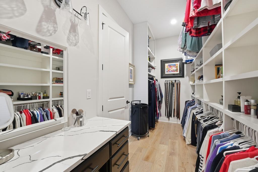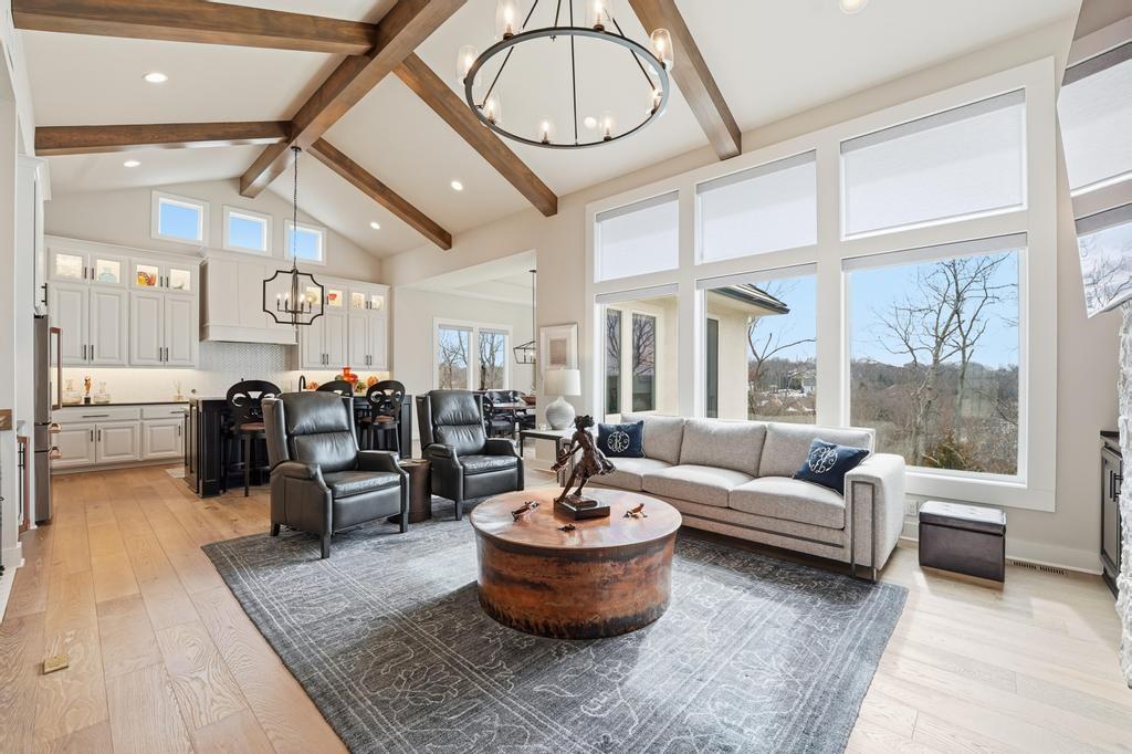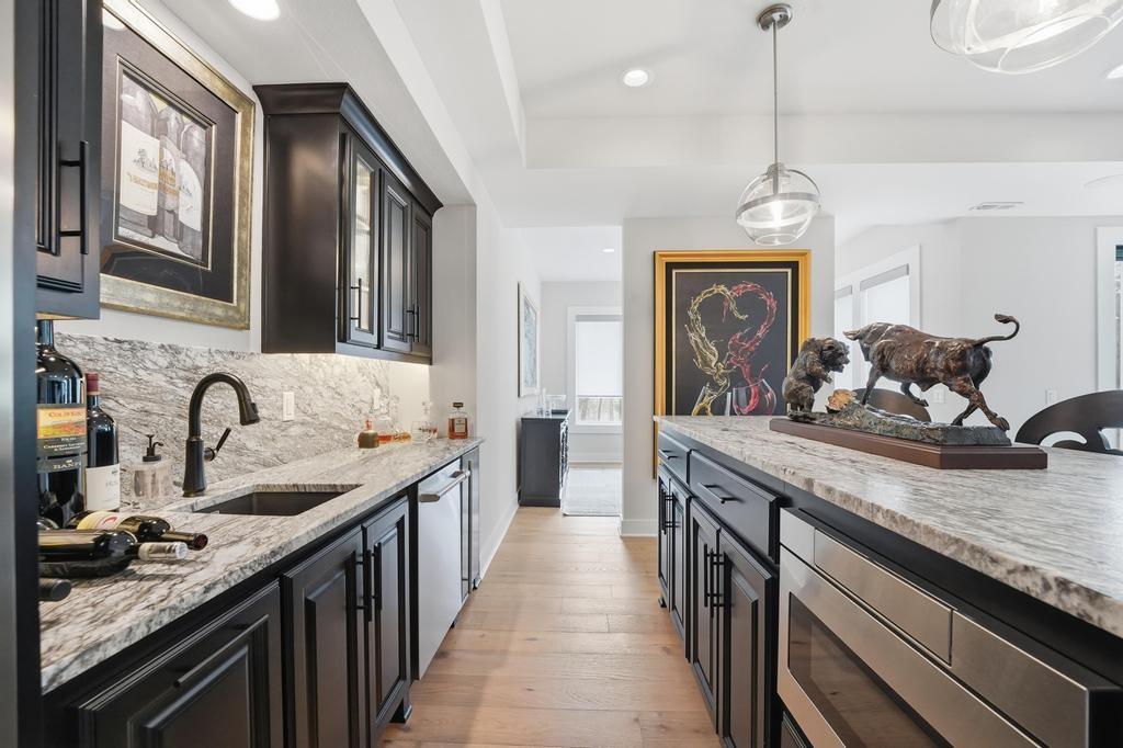 Almost new and lightly lived in, this custom-built home offers elevated design, thoughtful upgrades, and effortless living in the resort-style community of Cedar Creek. Perfectly positioned backing to Hole #5 tee box of the award-winning private Shadow Glen Golf Course, the setting offers both beauty and privacy. Inside, the light-filled, open floor plan showcases modern wide-plank luxury wood flooring, LED lighting throughout, & motorized shades. As you enter the home, your eyes are immediately drawn to the large wall of windows overlooking the golf course in the great room with vaulted ceiling, stunning fireplace and built-ins. The gourmet kitchen features a large quartz island, walk-in pantry, and GE Café appliances with striking copper hardware including a gas range, refrigerator, microwave, beverage fridge, and dishwasher. The laundry room offers a convenient sink and built-ins. Designed for comfort, you can relax on the screened-in porch with fireplace and TV. The spacious primary suite has wood floors and lighted tray ceiling. The spa-inspired bath has a large tiled shower, soaking tub, under-cabinet lighting, and a large walk-in closet with built-ins & dedicated makeup/vanity area. A second main level bedroom also features luxury wood flooring. The stunning lower level, complete with modern fireplace and a full wet bar featuring honed quartz counters, wine fridge, microwave, dishwasher, sink, and ice maker is perfect for gatherings with friends and family. Two additional bedrooms in the lower level with a shared bath are perfect for guests. A huge finished storage closet with custom built-ins provides exceptional organization. Additional upgrades include a recirculating water system, two 50-gallon water heaters, electric vehicle charger hookup, epoxy garage floor, sealed driveway, buried drains, and striking stucco and stone exterior. Maintenance-provided services include lawn care and snow removal. This is refined, low-maintenance luxury living at its best.