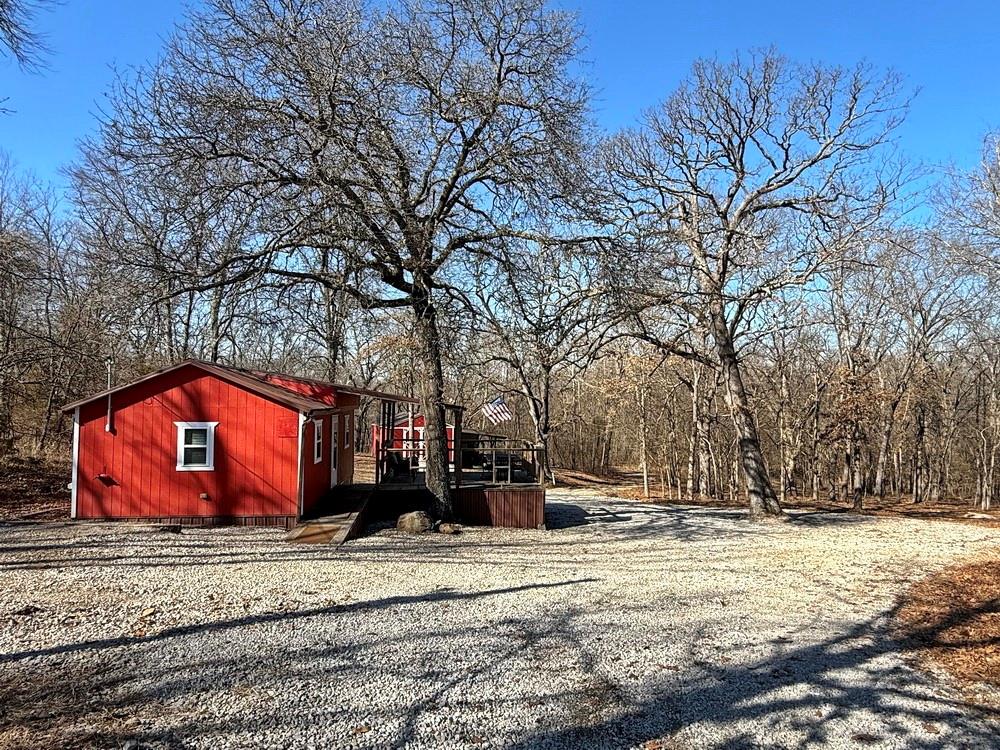 Complete Recreational Package: Land, Cabins, River, Trails, Hunting, Fishing. For sale just 3 miles west of El Dorado Springs, MO in Vernon County, is this 135-acre tract of the most prime recreational property around. This farm boasts 1.2 miles of Clear Creek frontage, scattered food plot fields on the south, timbered ridges on the north, and lush creek bottoms with a wetland slough that can be improved for duck hunting. The ~3-mile trail system on this property is fantastic with quick and easy access for ATV, UTV, and trucks. There are 2 cabins on the property. The first cabin is set at the main gate and is a 16’x24’, single room cabin with a kitchen, bathroom, and sleeping area. The cabin also has an outdoor shower, 14’x16’ covered deck, circle drive, firepit area, and 15’x20’ storage building with a 14’x20’ attached lean-to. The property is improved with rural (public) water, electric, small septic, and fiber internet (available). The second cabin is completely off-grid, sits on the northwest corner of the property, and is primitive in nature. The setting is on a bluff above Clear Creek surrounded by hardwood trees. This cabin is 16’x20’ with a large deck and firepit area. It showcases 1 large room with a kitchenette area, living room, wood stove, bathroom, and large-window views. A small solar system provides the electrical needs, and water can be hauled in for use. If you want a secluded cabin with an adventure, this is the place! Recreational properties with this location and improvements are rare to find, so call today to set up your private tour!