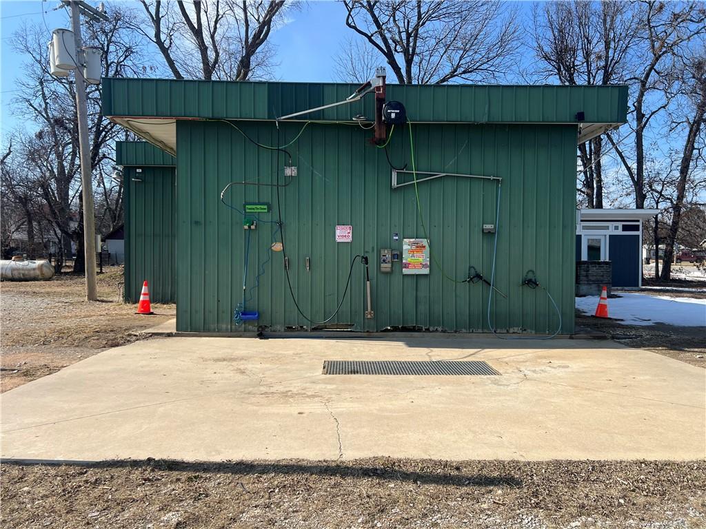 Excellent opportunity to own a multi-bay car wash in Chetopa. The property features two self-serve bays along with two vacuum stations and offers additional flexibility, as the seller was in the process of converting an additional bay into a laundromat — creating an opportunity to diversify and expand use. Recent improvements include cleaned and serviced water lines, a new tankless water heater, and a new Kleen Rite pump, helping reduce immediate maintenance expenses and improve efficiency for the next owner. A blue 10' X 12' shed located on the property may remain with the sale for an additional price, offering extra storage or operational space. Continue operating as a car wash and complete the laundromat conversion, or explore other business possibilities — this property offers versatility and room for growth in a convenient location. Schedule your showing today!