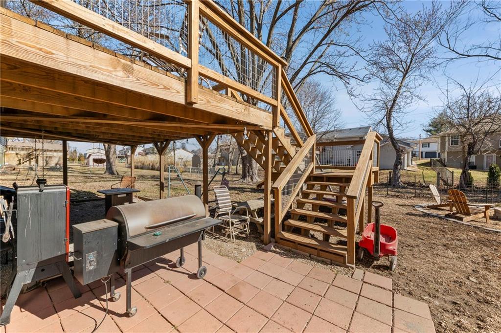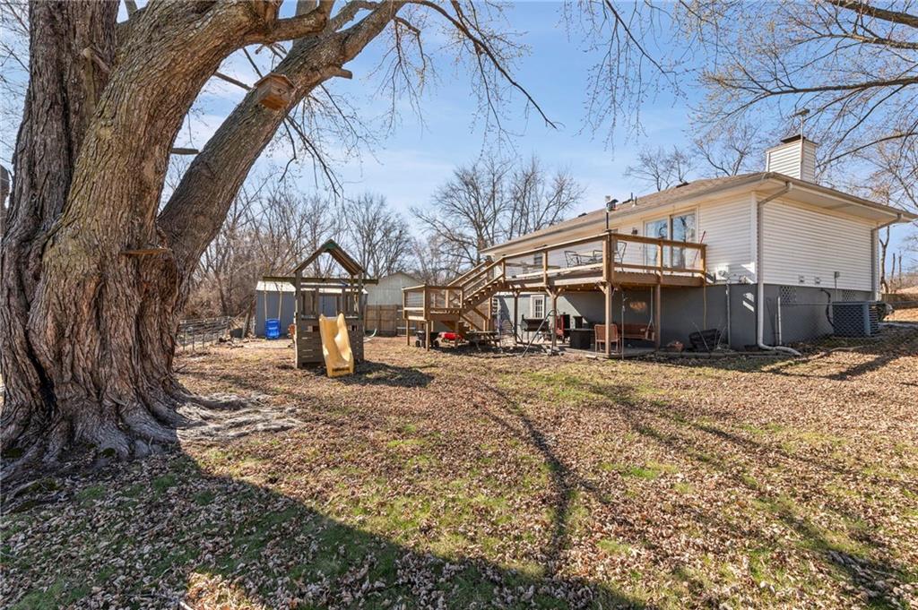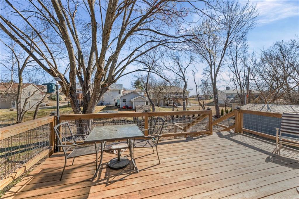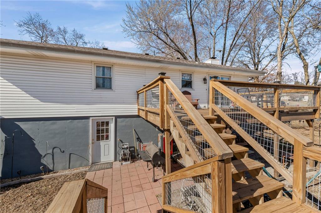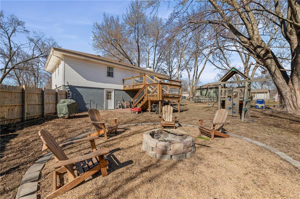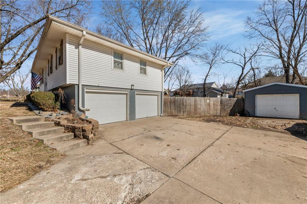 Split-level design • New oversized deck • 3 garage spaces Updated 3-bedroom split-level home offering 1,426 finished square feet in Gower, MO. Fresh interior paint and new flooring throughout both levels create a move-in ready feel. The remodeled kitchen is designed for everyday function and style, flowing from the eat-in dining area into the open living room for connected living space. All three bedrooms are located on the main level along with a fully renovated full bath featuring modern finishes and updated fixtures. Step outside to a newly installed and stained oversized deck just off the dining area. Stairs lead to a landing and continue to the walkout basement patio with a fire pit and gravel seating area overlooking the fenced backyard—ideal for outdoor gatherings or quiet evenings. Additional features include an attached two-car garage plus a detached one-car garage for added storage, workshop space, or hobby use. Convenient access to Highway 169 provides a direct route south to Smithville and Kansas City’s Northland or approximately 11 miles north to St. Joseph. Well-maintained and thoughtfully updated inside and out.