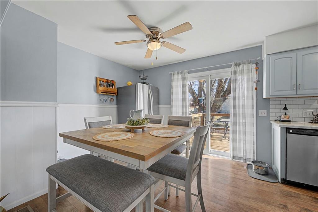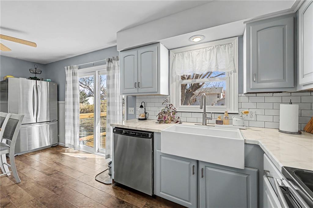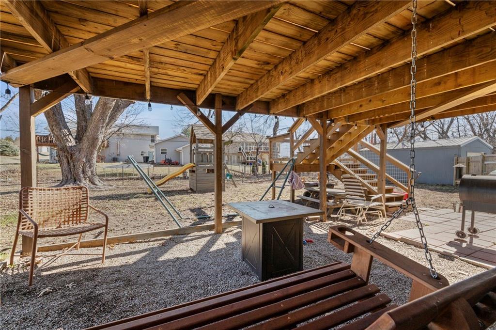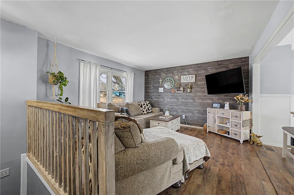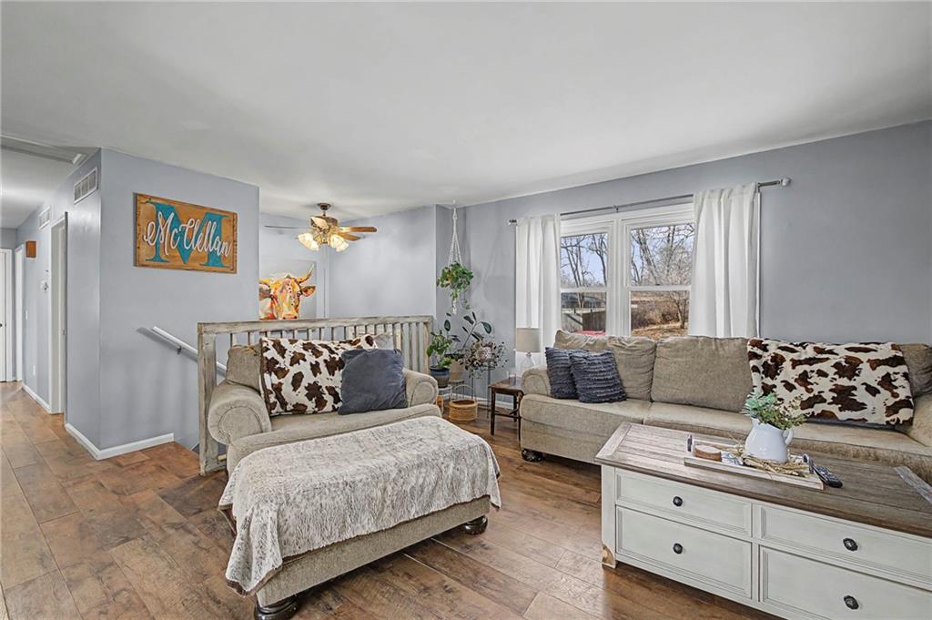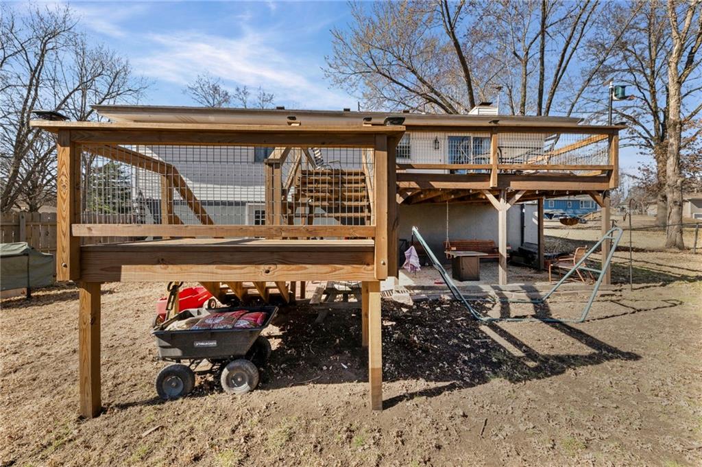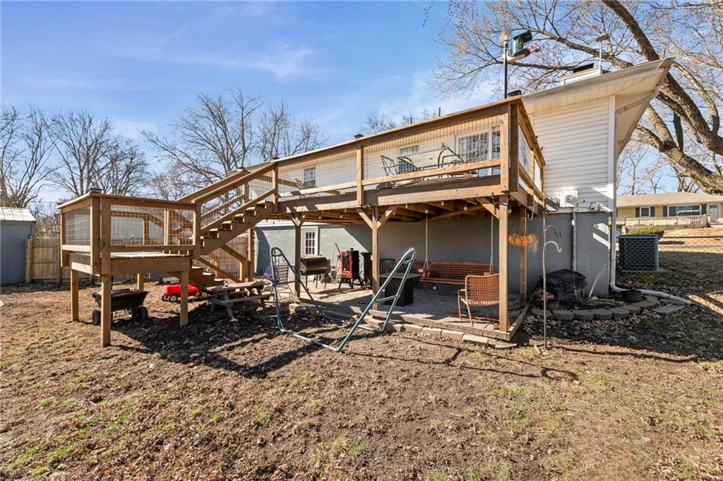 Split-level design • New oversized deck • 3 garage spaces Updated 3-bedroom split-level home offering 1,426 finished square feet in Gower, MO. Fresh interior paint and new flooring throughout both levels create a move-in ready feel. The remodeled kitchen is designed for everyday function and style, flowing from the eat-in dining area into the open living room for connected living space. All three bedrooms are located on the main level along with a fully renovated full bath featuring modern finishes and updated fixtures. Step outside to a newly installed and stained oversized deck just off the dining area. Stairs lead to a landing and continue to the walkout basement patio with a fire pit and gravel seating area overlooking the fenced backyard—ideal for outdoor gatherings or quiet evenings. Additional features include an attached two-car garage plus a detached one-car garage for added storage, workshop space, or hobby use. Convenient access to Highway 169 provides a direct route south to Smithville and Kansas City’s Northland or approximately 11 miles north to St. Joseph. Well-maintained and thoughtfully updated inside and out.