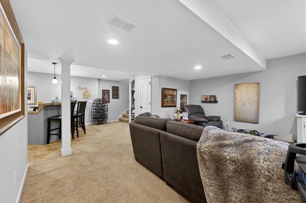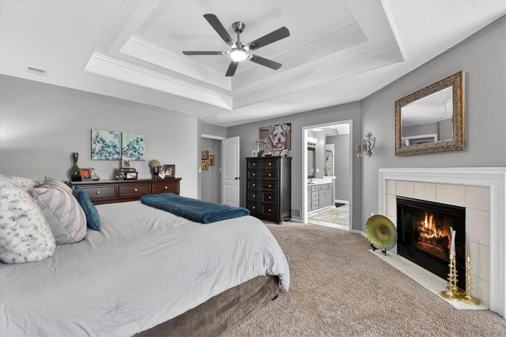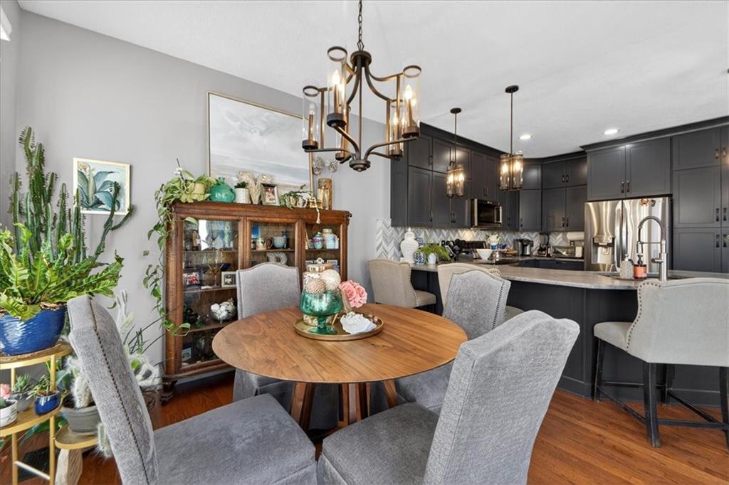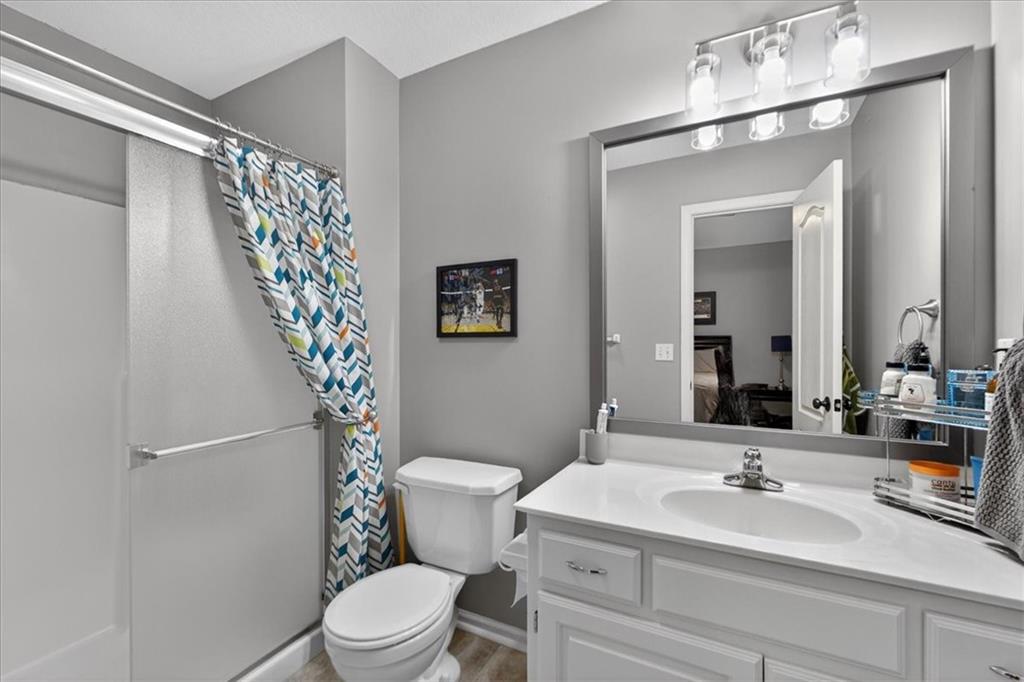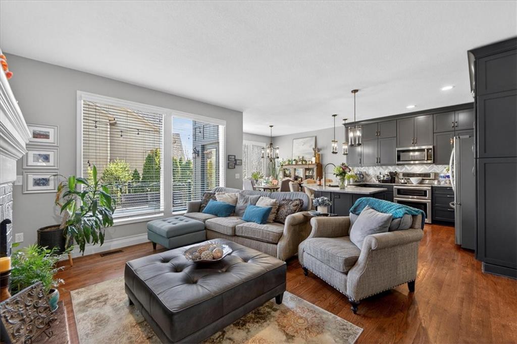 Welcome to this beautifully maintained 2-story home in the highly sought-after Wilshire Woods neighborhood within the Blue Valley School District. Situated on a spacious lot with mature trees and extensive landscaping, this home offers exceptional outdoor privacy rarely found in this price range. The main level features hardwood floors, a dramatic two-story entry, formal dining room, and multiple gathering spaces including a hearth room with fireplace and a light-filled living room. The updated kitchen serves as the heart of the home with quartzite countertops, soft-close cabinetry, tile backsplash, center island with seating, walk-in pantry, and stainless appliances. The adjoining breakfast area overlooks the backyard and opens directly to the deck and patio. Upstairs features a spacious primary suite with vaulted ceilings and sitting area along with a large ensuite bath offering double vanities, jetted tub, and separate shower. A rare custom dressing room addition provides exceptional storage and organization and includes its own HVAC mini-split for year-round comfort. A private guest suite and two additional bedrooms connected by a Jack-and-Jill bath complete the upper level. The finished daylight lower level offers a large rec room, wet bar with seating, full bath, and flexible space for a home gym, media area, or playroom. Enjoy outdoor living on the elevated deck or paver patio surrounded by mature trees and perennial gardens creating a peaceful and private setting. Located near Cottonwood Point Elementary, Oxford Middle School, Blue Valley Northwest High School, and blocks from Ascension Catholic School. Neighborhood amenities include a community pool and walking trails. Move-in ready with space, updates, and a hard-to-find private backyard setting in southern Overland Park.