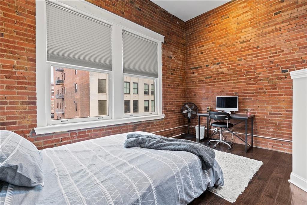 Live in the center of it all in this TOP-FLOOR studio located in the heart of Downtown Kansas City. Situated only blocks from the Streetcar, River Market, Power & Light District, and countless restaurants, coffee shops, and entertainment venues. With the World Cup and other major events bringing even more excitement to the downtown area, this is a great opportunity to be in the action and enjoy everything the city has to offer. Plus, Kansas City International Airport is approximately a 20-minute drive. With soaring ceilings, oversized windows, and a skylight bringing in natural light, the space feels open, bright, and full of character. Wood flooring and industrial-style details give the home a true downtown loft feel. The kitchen offers granite countertops, stainless steel appliances, and plenty of workspace, while a custom privacy wall creates separation that allows the layout to live more like a one-bedroom. A spacious walk-in closet provides great storage, and the updated full bathroom adds a clean, modern finish. Residents enjoy access to building amenities including a fitness center, community lounge with bar and pool table, private theater room, storage lockers, and on-site laundry. This location puts you right in the middle of Kansas City’s energy. NEED THE UNIT FULLY FURNISHED? INQUIRE FOR MORE INFORMATION