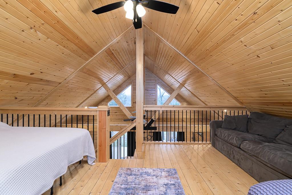 BEAUTIFUL 2-BED 1-BATH LAKE HOME ON DOUBLE LOT WITH BIG GARAGE FOR YOUR BOAT OR RV! This move-in ready getaway comes fully furnished and includes all appliances, so you can start enjoying the lake right away. Inside, you’ll love the hardwood floors and rustic wood walls, ceilings, and beams in the vaulted spaces, plus a cozy open living area with a loft bedroom that looks out over the main room. The covered front porch is a great spot to relax after a day on the water. Outside, there’s a 16x28 carport and a 28x40 metal garage that’s perfect for storing your boat, RV, or lake toys. The gated community offers 2 pools, putt-putt course and golf course and clubhouse. Plus it is a pivate lake, no registration for fishing or boating! The home sits on a double lot with second-tier lake access and is just a short walk to the water, giving you the lake lifestyle without the lakefront price. This is an easy, low-stress lake place ready for weekend fun or full-time living.
