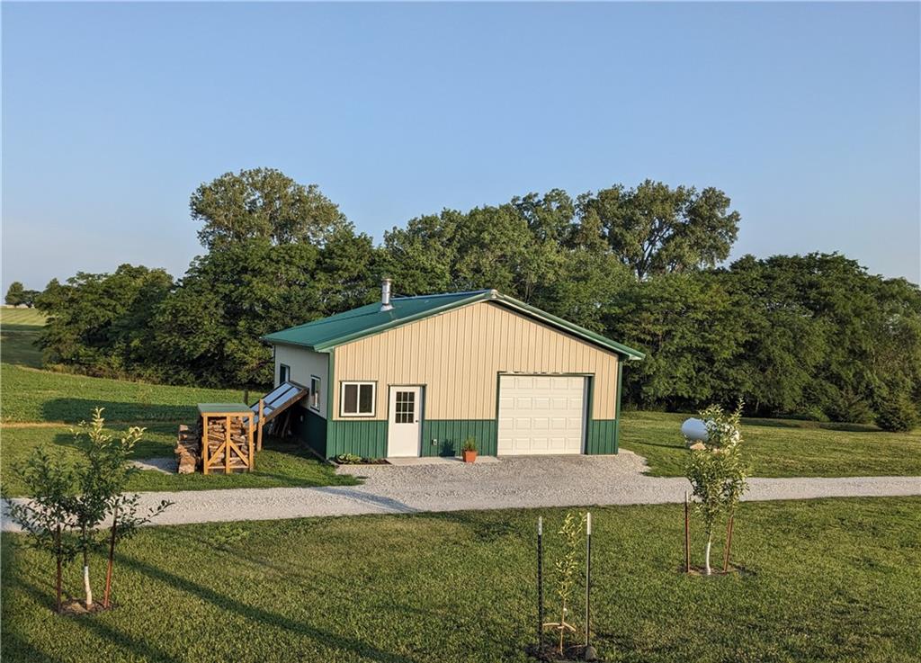 Spacious multigenerational ranch home with over 4,400 sq ft of finished living space on nearly 11 acres with wooded area. Primary home: Huge master bedroom with walk-in closet, guest bedroom and office (can be used as a 3rd bedroom), 1 3/4 bathrooms, sunroom, propane range and fireplace, 2-car garage. All-metal post frame construction with 9-inch exterior walls set on concrete piers. Secondary home: 5 large bedrooms and 1 3/4 bathrooms, family room, dining room and kitchen, one-car garage. 978 sq. ft. machine shop with clean off-grid water supply, solar electric power (with supplemental grid electric as needed) and heat (wood stove and propane heater), one-car garage space with separate garage access for lawn mower. Art room with Murphy bed and ¾ bath. Additional features: Built in bookcases; Home gym with Vectra On-Line 1800 Strength Training Gym and other work-out equipment; Above ground storm shelter; 8’ wide covered porch runs the length of primary home; 8’ wide north-facing (shaded) porch secondary home; RV pad with power and dump station; Back patios; Landscaping (grass, fruit trees, flower and garden beds); Grape arbors; Chicken coop with large run; 12’ x 16’ Tool shed; Both homes handicap accessible; Blacktop frontage with current access off Wamsley Road (gravel); Fire pit and trails in the woods.